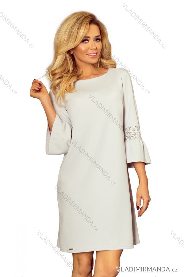 Šaty MARGARET s rozšířeným rukávem a krajkovou vložkou - velmi pohodlné - světle šedá. Produkce Polsko.