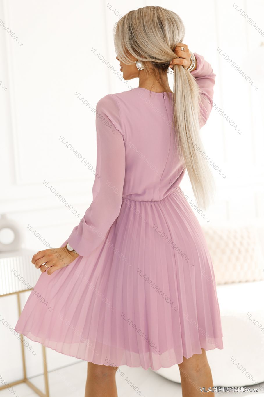 GOODS (119500) > Women's clothing (80925) > dress (30355) > dress elegant (8545) > Elegant short sleeve dress (2052) > 313-16 ISABELLE Polish pleated dress with long sleeves and neckline - powder pink