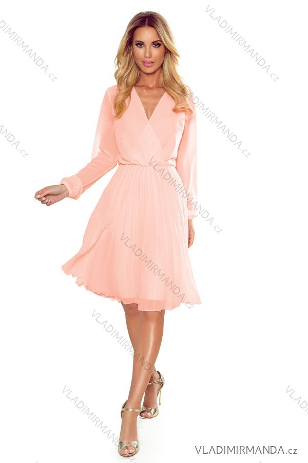 GOODS (119519) > Women's elegant fashion (5695) > Dress-skirts-overalls (3112) > 313-2 ISABELLE Pleated dress with neckline and long sleeve - peach color