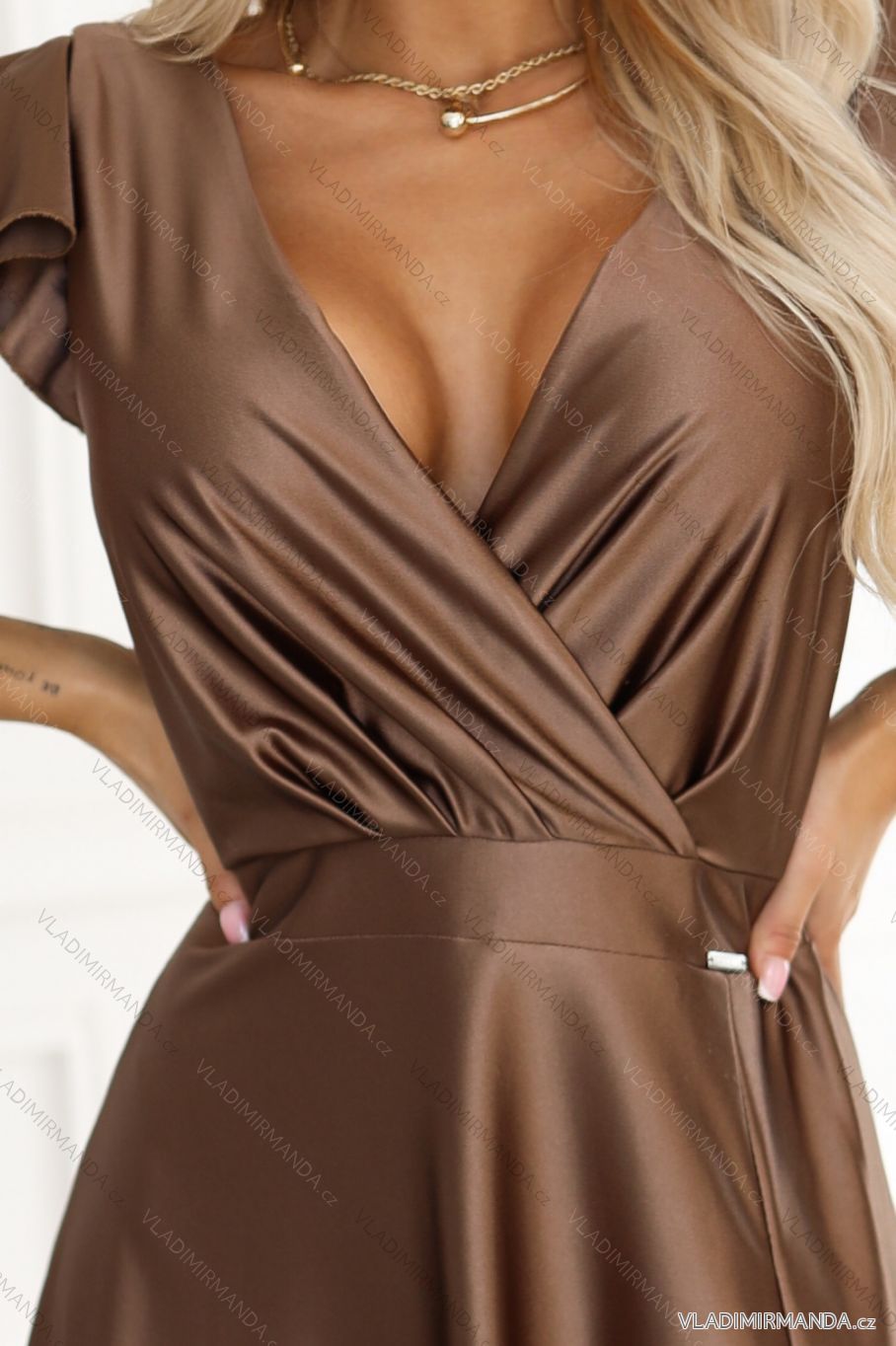 TOVAR (120939) > oblečenie dámske (82017) > šaty (30777) > Šaty spoločenské (5036) > Šaty plesové dlhé (3175) > 411-14 CRYSTAL dlhé saténové šaty s výstrihom - mocha mousse