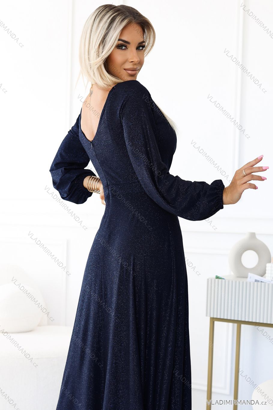 ZBOŽÍ (120681) > Oblečení dámské (82131) > Šaty (31067) > Šaty společenské (4630) > Šaty plesové dlouhé (2938) > 572-1 NELA lesklé dlouhé šaty s výstřihem a dlouhými rukávy - tmavě modrá