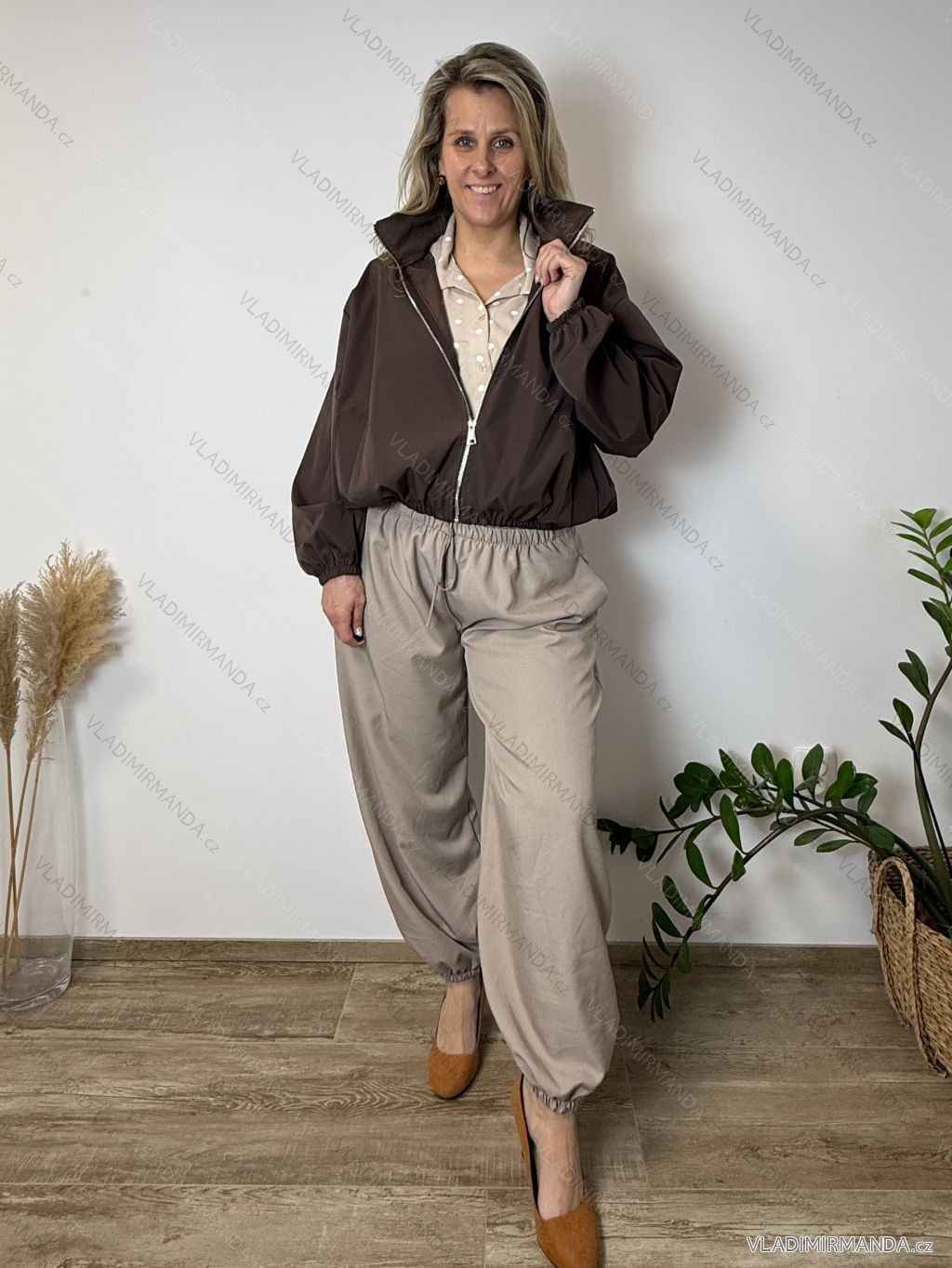 Bunda krátká oversize dlouhý rukáv dámská nadrozměr ZITA (42/44/46 ONE SIZE) ITALSKÁ MÓDA IMWCM26001/DUR 42/44/46 světle béžová
