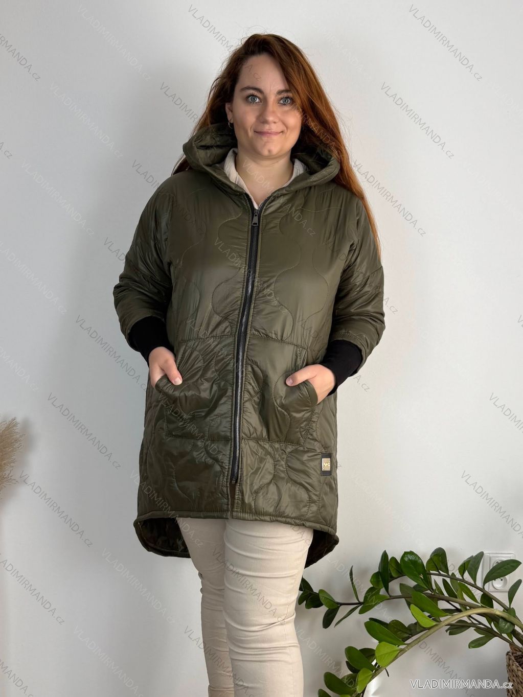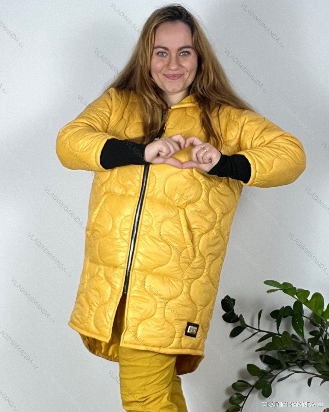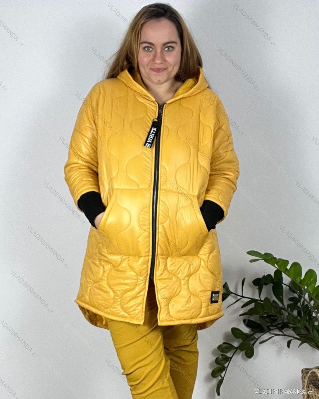 Bunda s kapucí dámská nadrozměr (3XL/4XL ONE SIZE) ITALSKÁ MÓDA IM423683/DUR žlutá 3XL/4XL