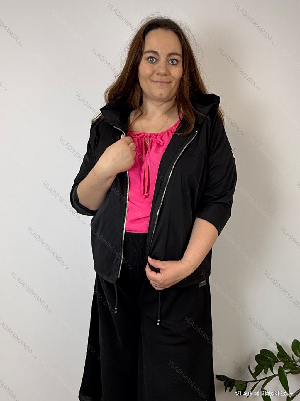 Bunda šusťáková s kapucí dlouhý rukáv nadrozměr JULIE dámská (42/44/46 ONE SIZE) ITALSKÁ MÓDA IMSM260004/DUR černá 42/44/46