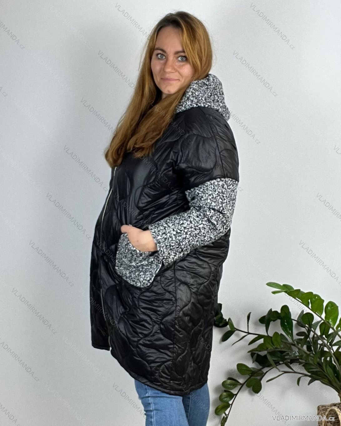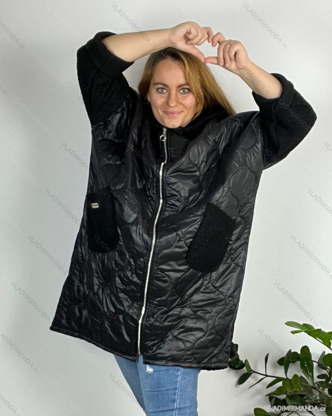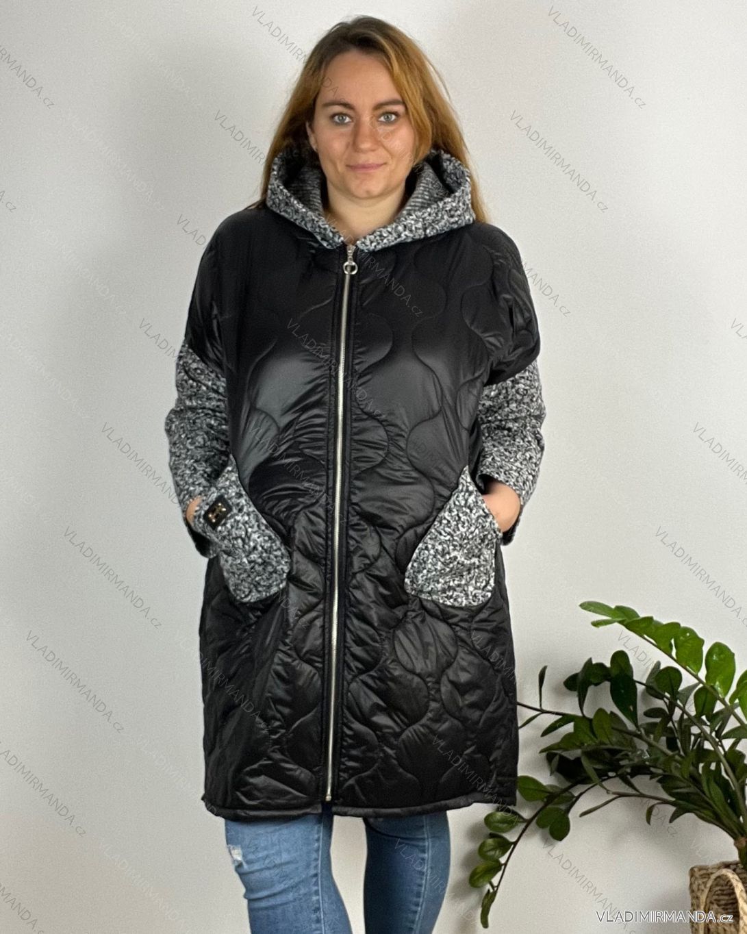 Bunda zimná s kapucňou dlhý rukáv dámska nadrozmer (54/56/58 ONE SIZE) TALIANSKA MÓDA IMD24436/DR 56/58 šedá