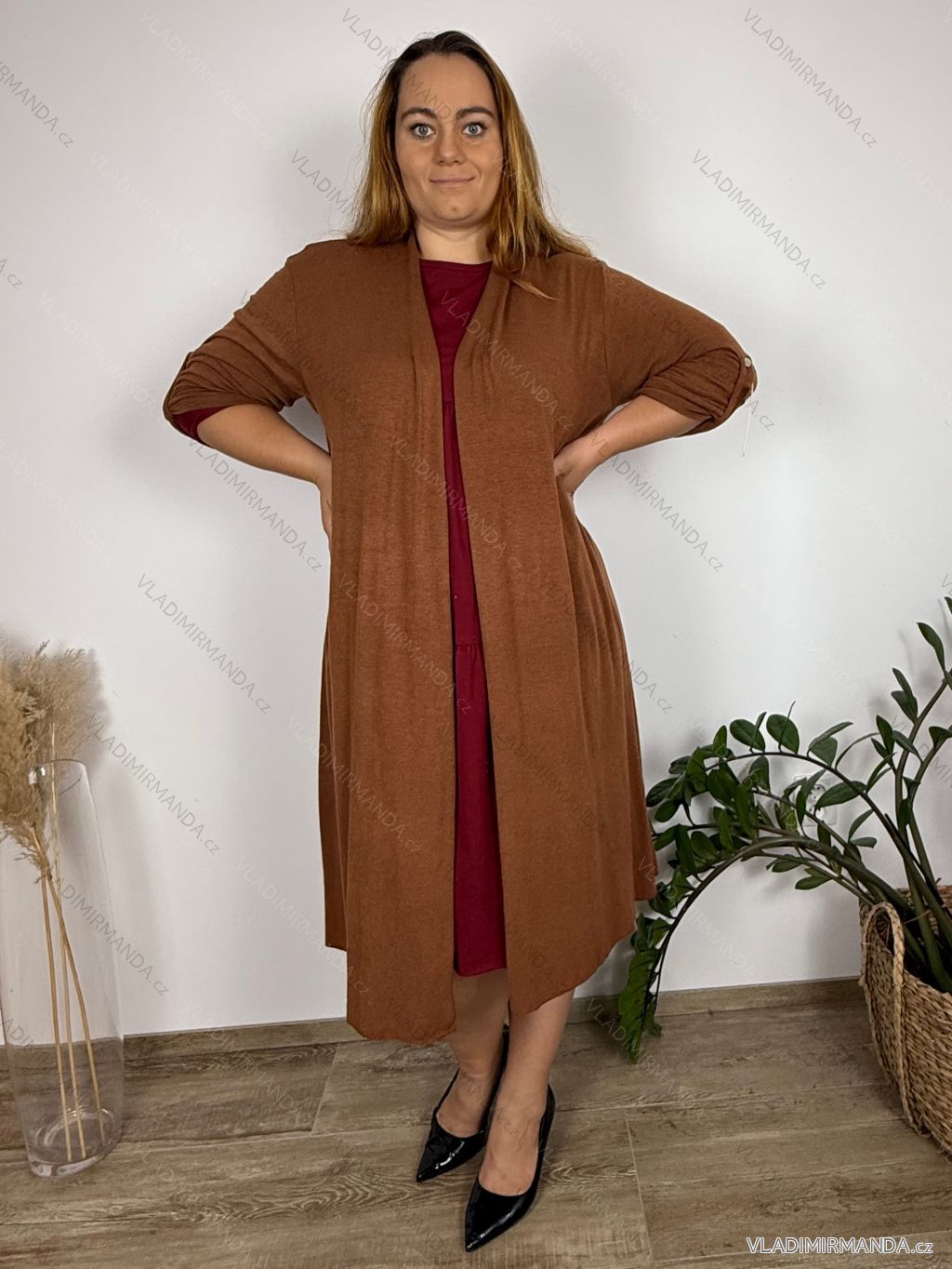 Cardigan dlouhý bavlněný 3/4 dlouhý rukáv dámský nadrozměr (52/54/56 ONE SIZE) ITALSKÁ MÓDA IM425550/DUR 52/54/56 vínová