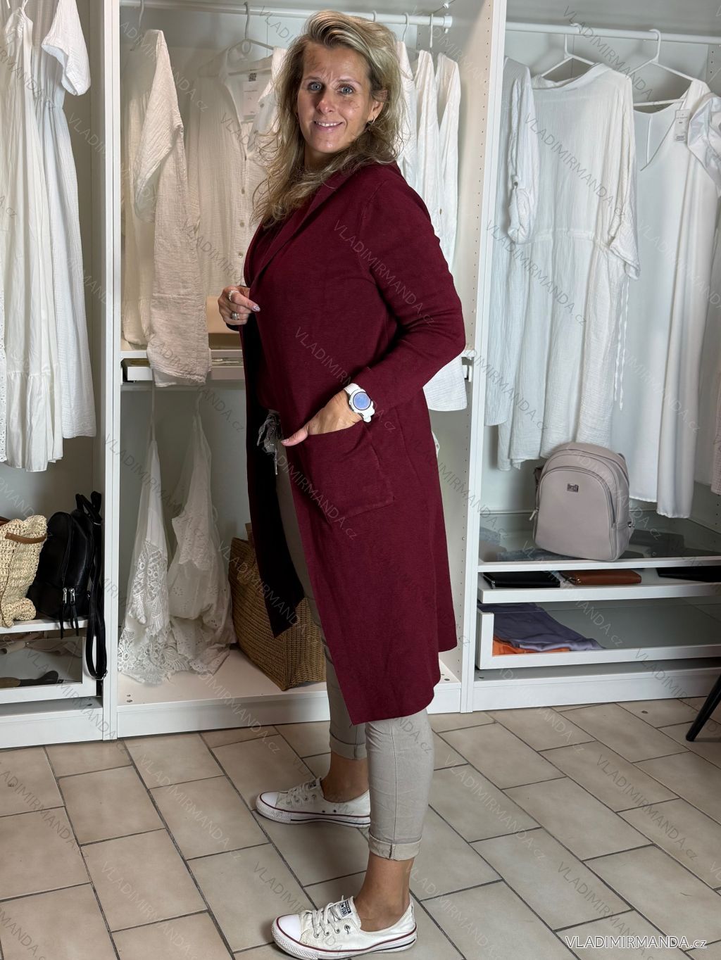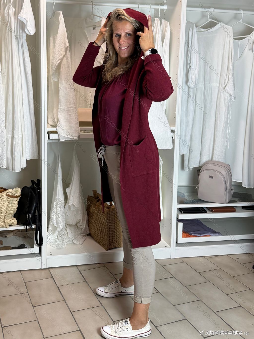 Cardigan s kapucí dlouhý rukáv dámský nadrozměr (44/46/48 ONE SIZE) ITALSKÁ MÓDA IMSM251131/DR 44/46/48 vínová