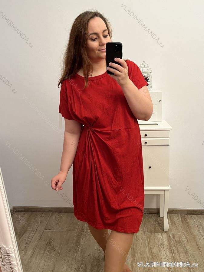Damen-Kleid in Übergröße aus Baumwolle mit kurzen Ärmeln (2XL/3XL Einheitsgröße) ITALIAN FASHION IMD23115