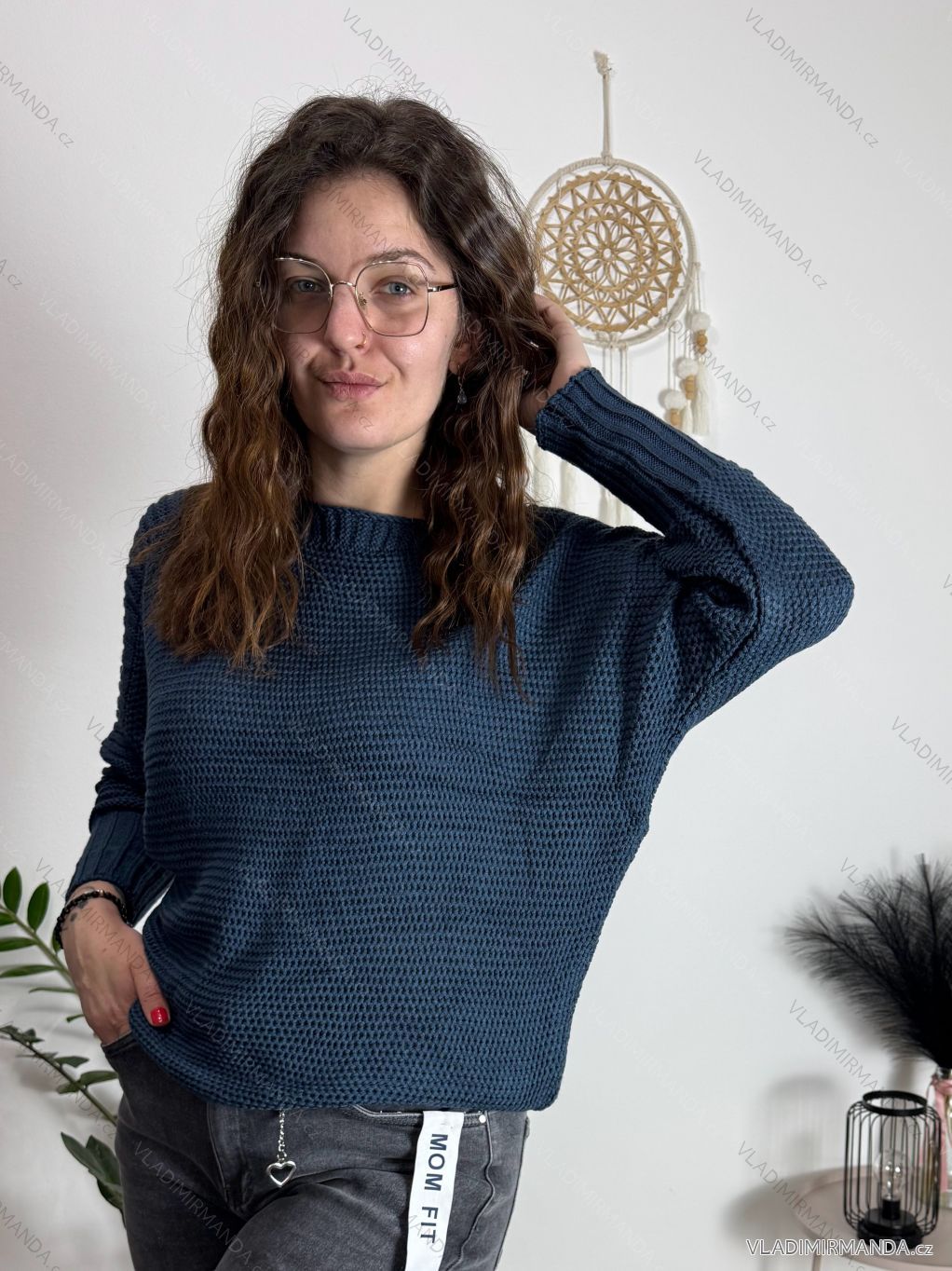 Svetr pletený dlouhý rukáv netopýří dámský, proplétaný lesklou nití