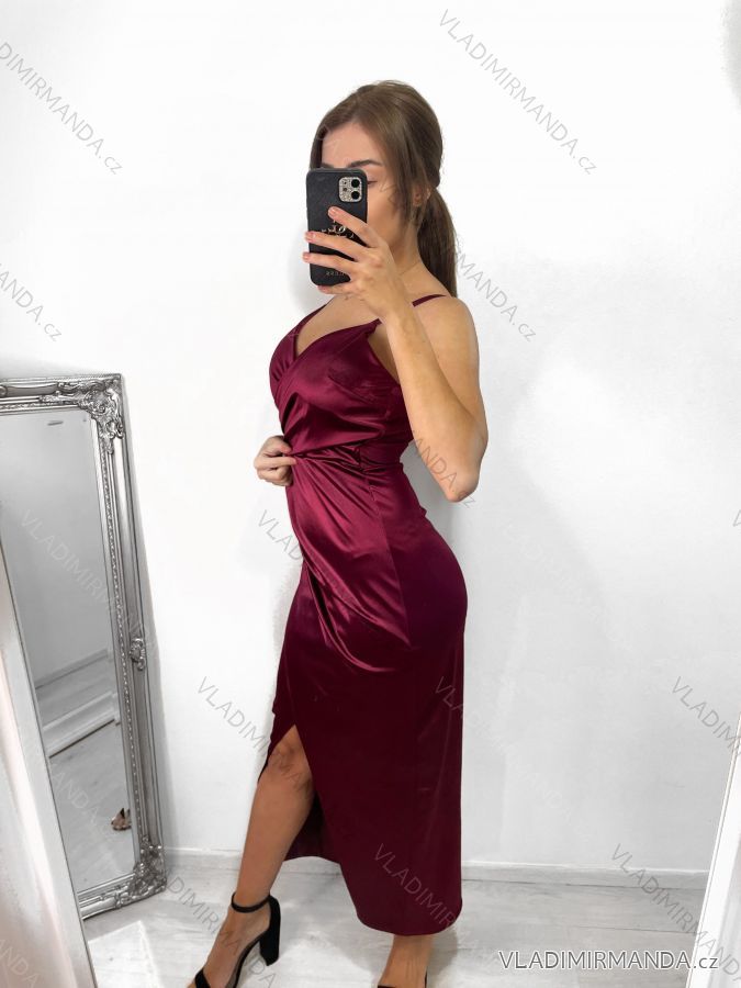 Elegantes Partykleid aus Satin mit Trägern für Damen, Reißverschluss hinten, Brust mit Polsterung,