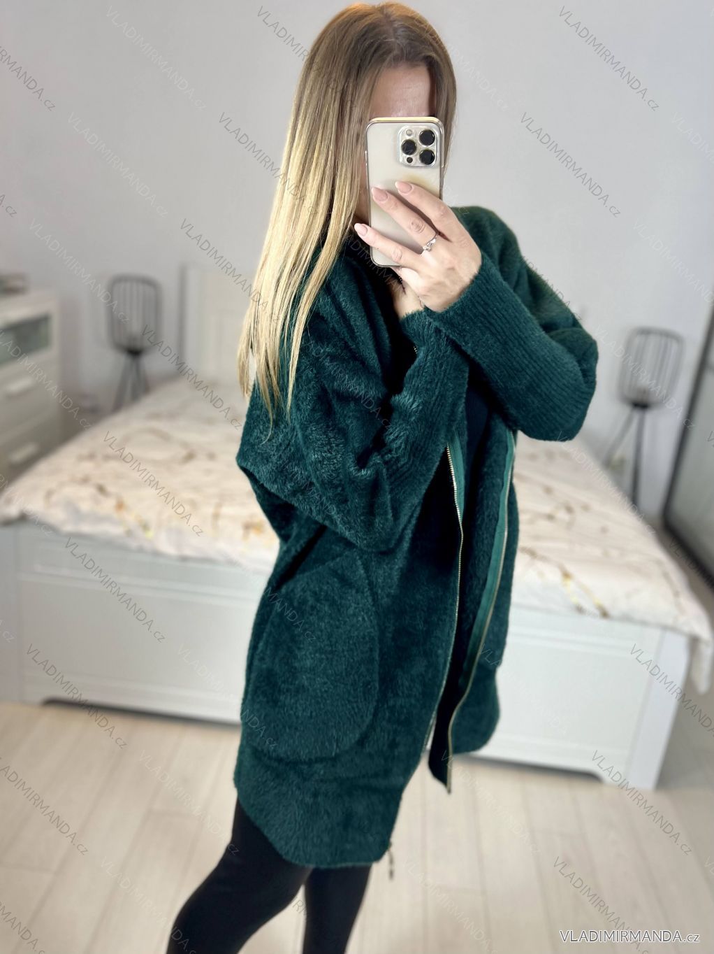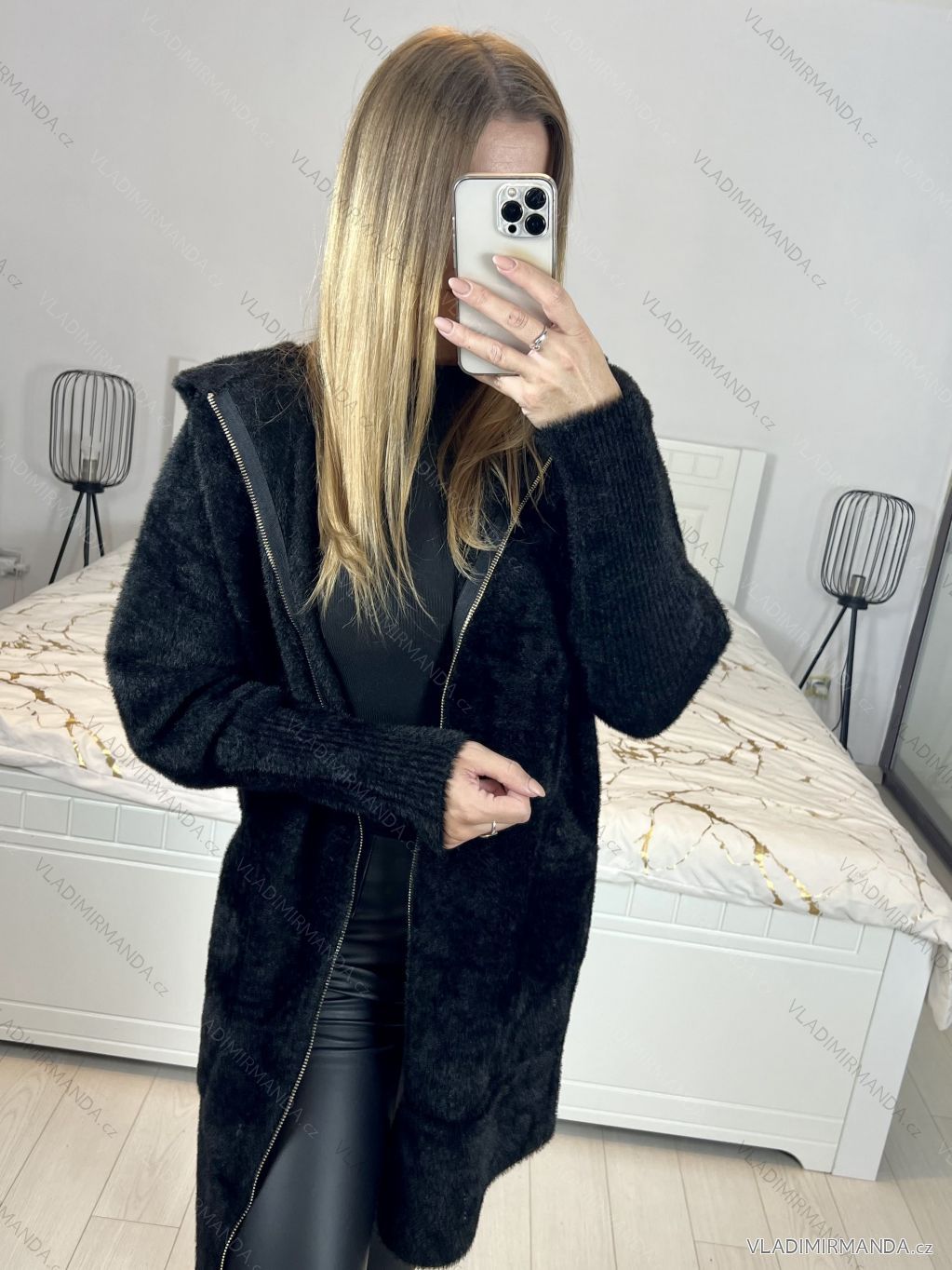 Kabát alpaka s kapucňou dlhý rukáv dámsky nadrozmer (S/M/L ONE SIZE) TALIANSKA MÓDA IMWCW23011