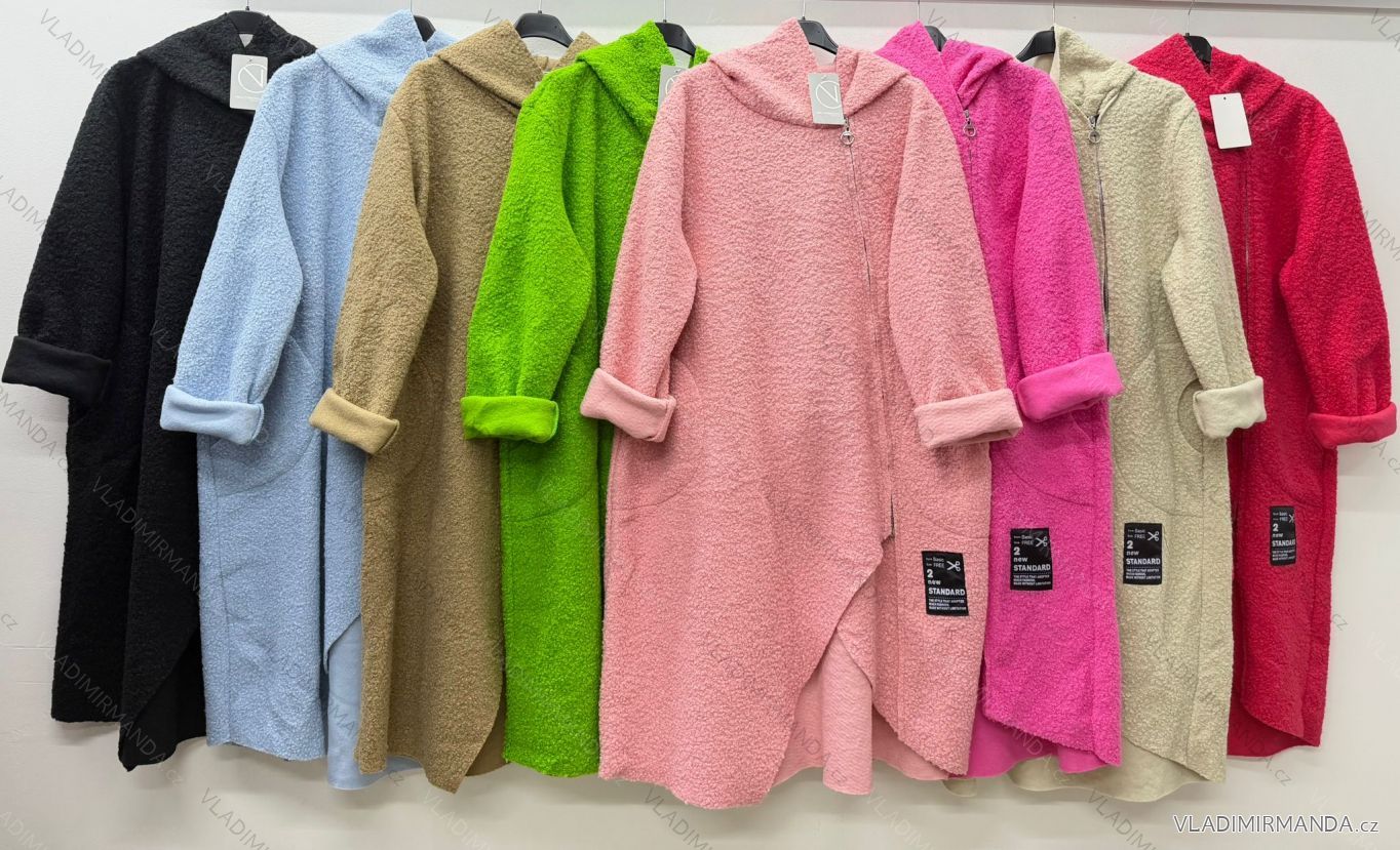 Kabát beránkový s kapsami dlouhý rukáv dámský nadrozměr (50/52/54 ONE SIZE) ITALSKÁ MÓDA IM426018