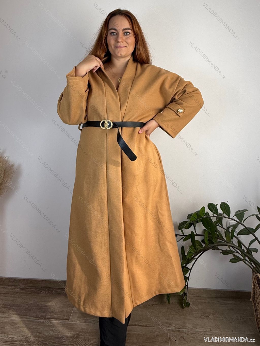 Kabát dlouhý s páskem dlouhý rukáv dámský nadrozměr (52/54/56 ONE SIZE) ITALSKÁ MÓDA IMC25399/DR 52/54/56 hnědá camel