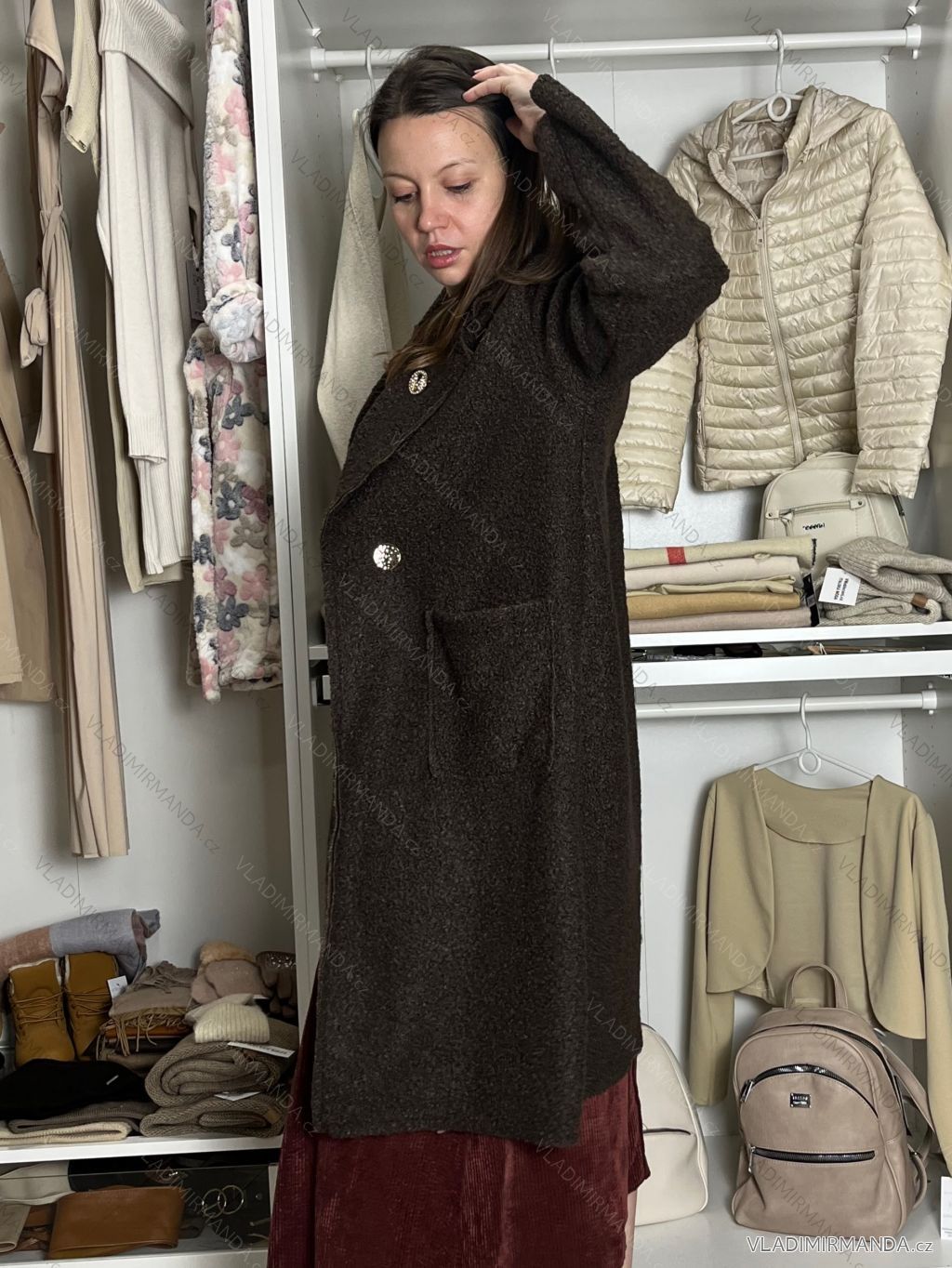 TOVAR (119503) > oblečenie dámske (80843) > Bundy, kabáty, vesty a saka (8657) > kabáty dámske (3525) > kabáty flaušový (812) > Kabát flaušový baránkový dlhý rukáv dámsky (M/L/XL ONE SIZE) TALIANSKA MÓDA IMD25238/DU M/L/XL tmavo hnedá