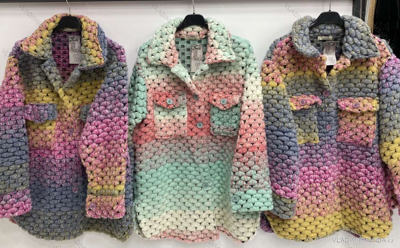 Kabát krátký dlouhý rukáv na knoflíčky dámský (S/M ONE SIZE) ITALSKÁ MÓDA IMWH21024