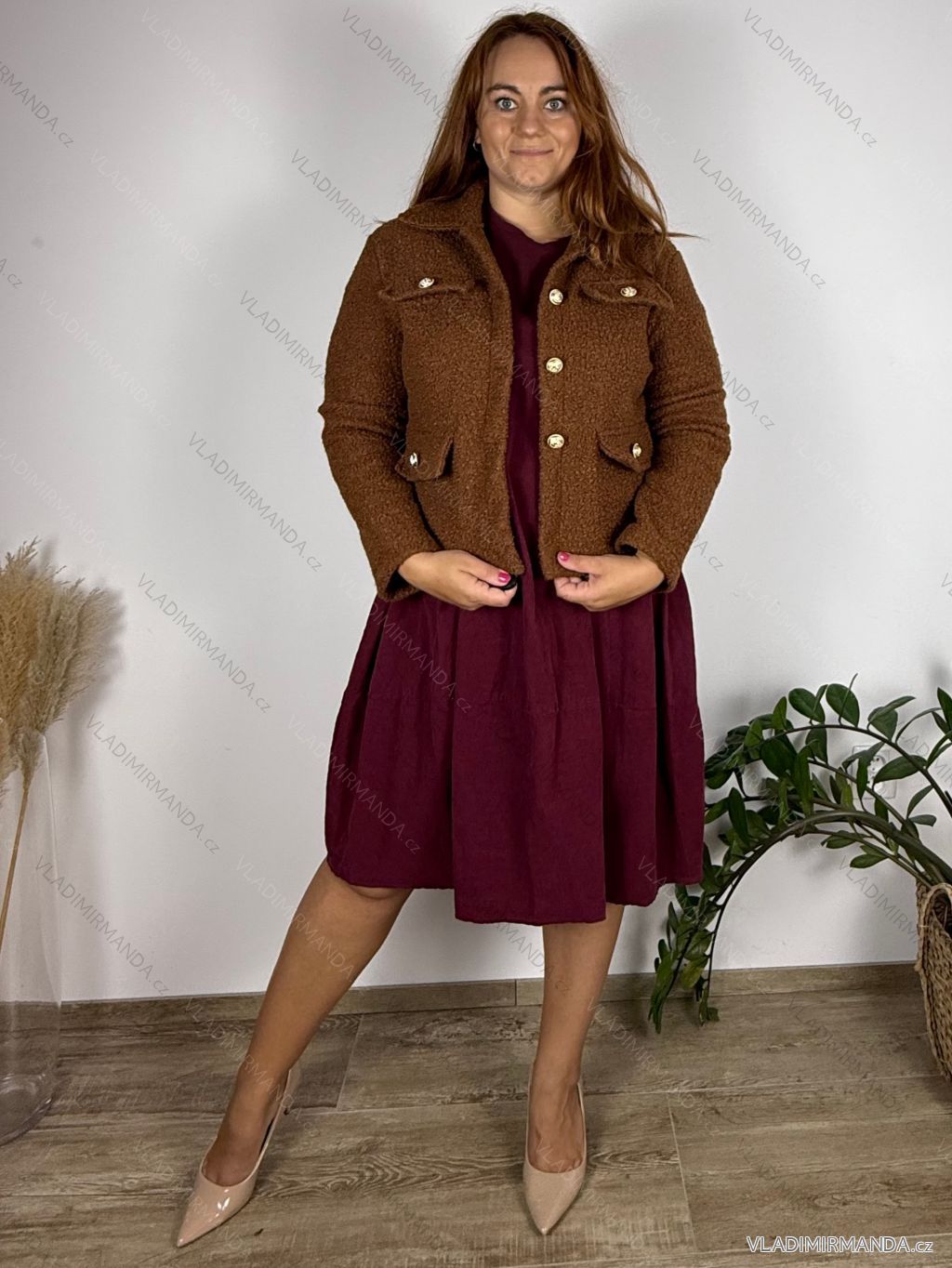 ZBOŽÍ (125060) > Oblečení dámské (81731) > Bundy, kabáty,vesty a saka (8728) > Kabát krátký flaušový beránek dámský nadrozměr (40/42/44-46/48/50 ONE SIZE) ITALSKá MóDA IMSM2511116