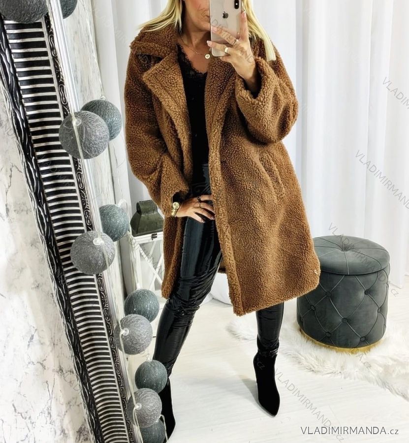 Kabát teddy dlouhý rukáv dámský (S/M ONE SIZE) ITALSKÁ MÓDA IMWHK217679