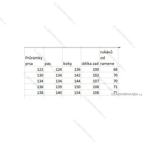 7XL - přes prsa 138cm, v pase 140cm, přes boky 154cm, délka 108cm, přes ramena 71cm.