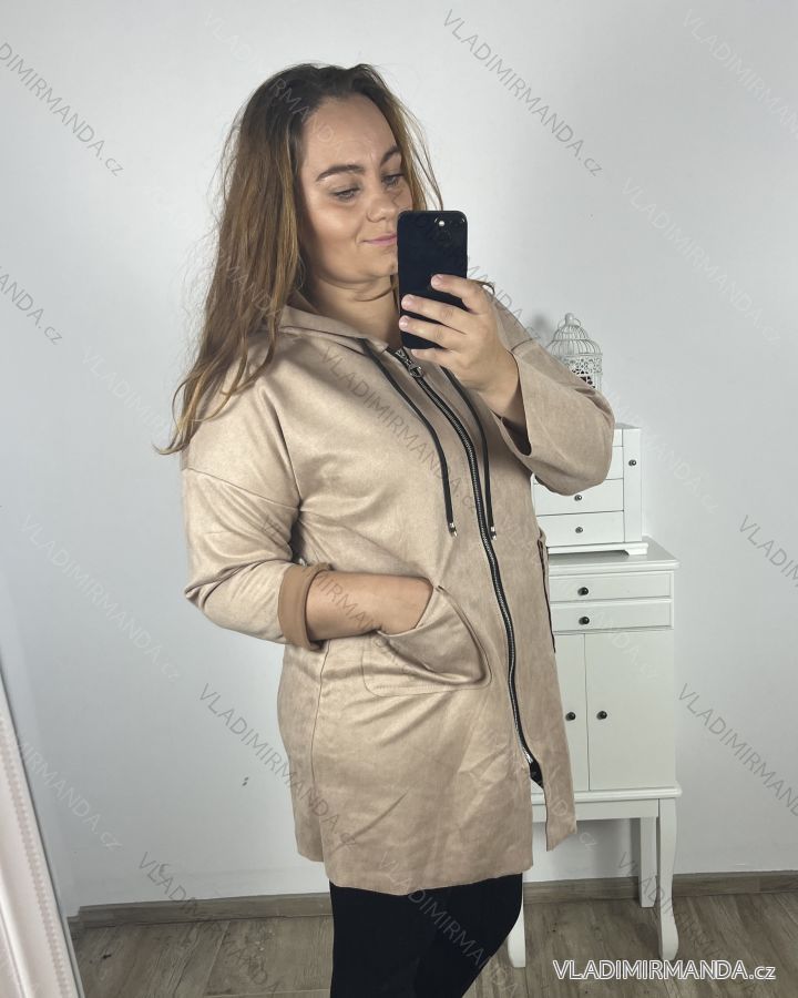 Kabátek s kapucí na zip dlhý rukáv dámsky nadrozměr (2XL/3XL ONE SIZE) TALIANSKA MODA IM423MIRANDA/DU 2XL/3XL hnedá