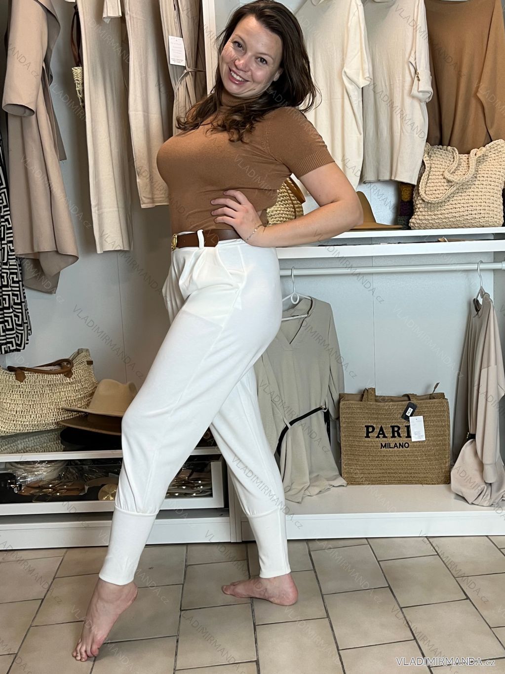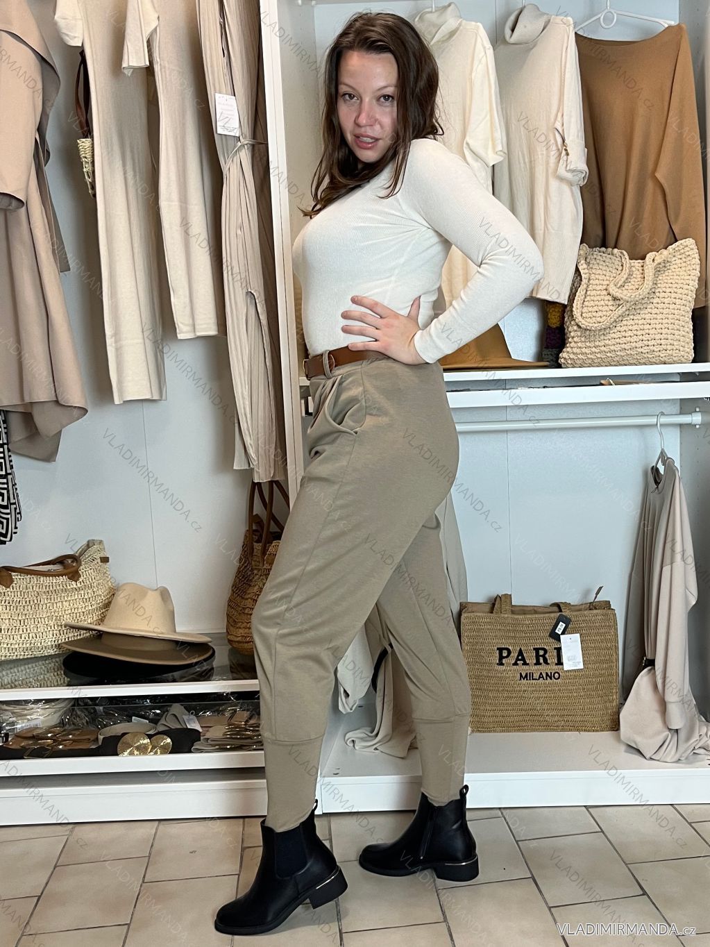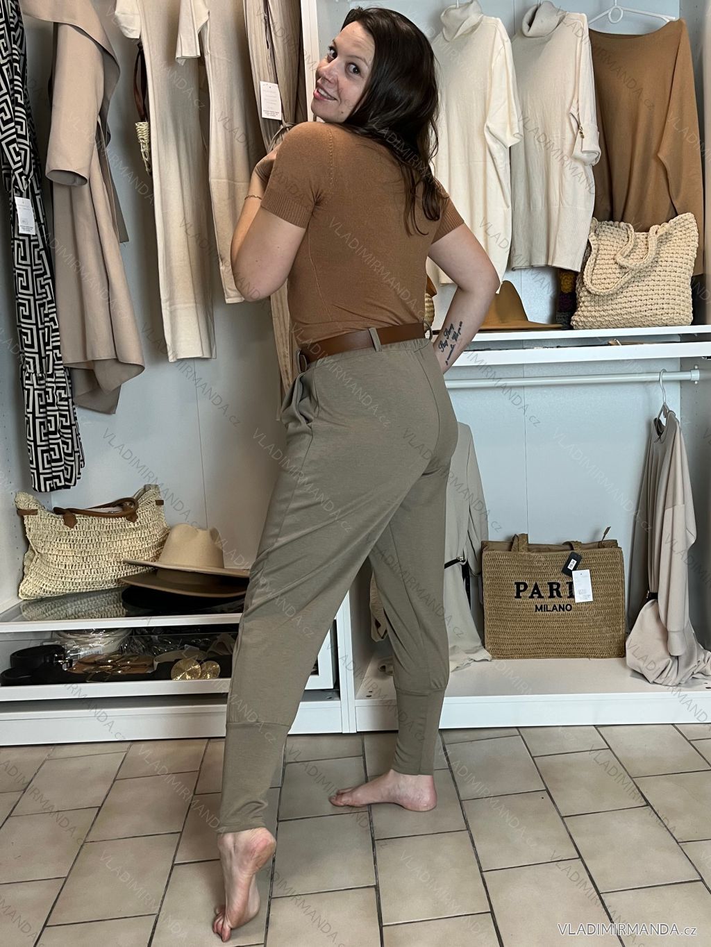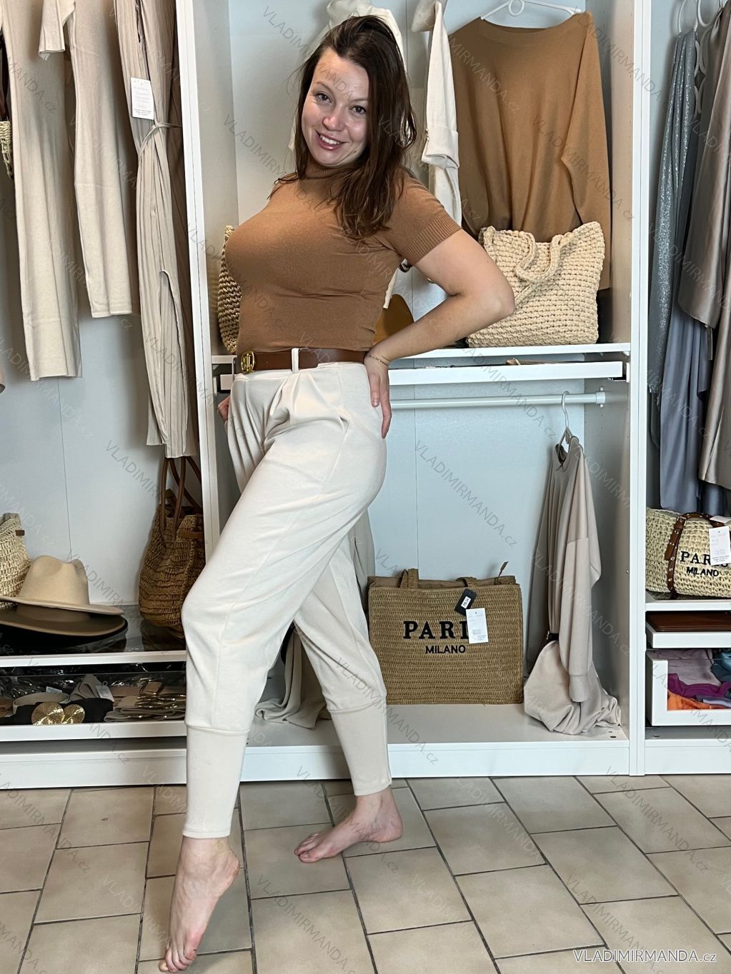 Kalhoty elegantní s páskem dámské (S/M/L ONE SIZE) ITALSKÁ MÓDA IM425030/DUR sv. hnědá S/M/L