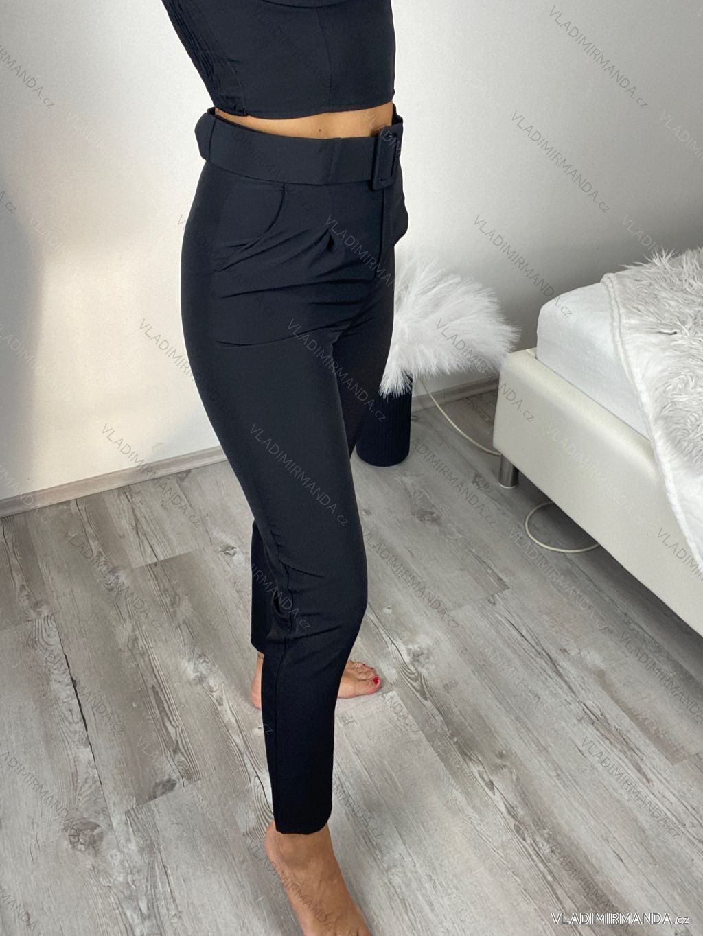 Kalhoty s páskem dlouhé dámské (S-M ONE SIZE) ITALSKÁ MÓDA IMPDY25MDUE22127/DU S Černá