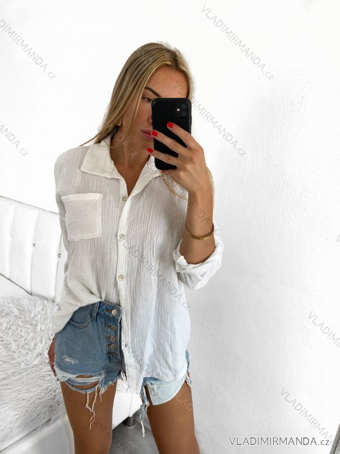 Košile mušelínová dlouhý rukáv dámská nadrozměr (S/M/L/XL/2XL ONE SIZE) ITALSKá MÓDA IMC23271/DU