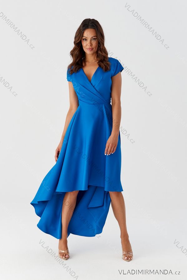 Langes Party-Kurzarmkleid für Damen (36-56) POLISH FASHION PMLMR23SELENA-2 Königsblau 38