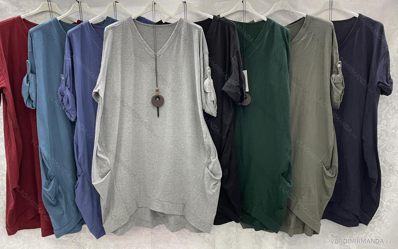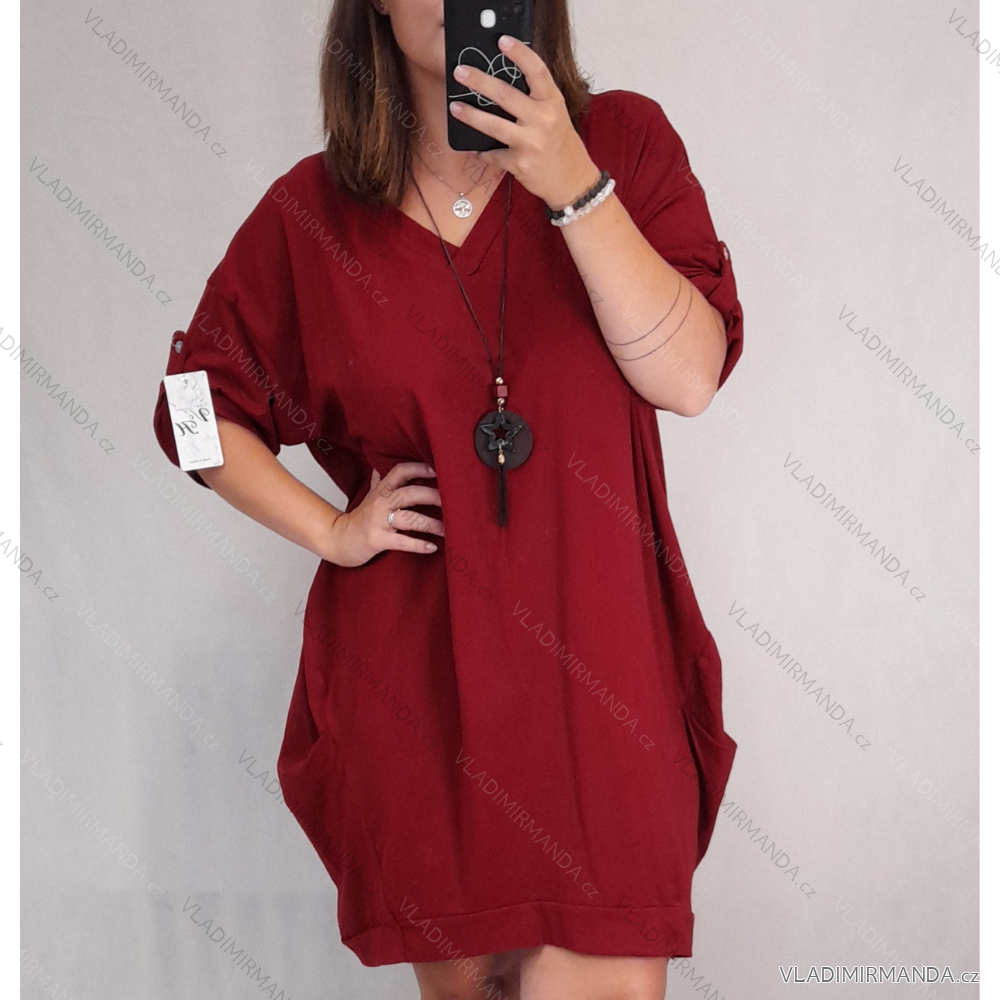 Šaty dlouhý rukáv s příveskem dámské nadrozměr (2XL/3XL ONE SIZE) ITALSKÁ MÓDA IMWQ2190862/DR Green 2XL / 3XL ONE SIZE