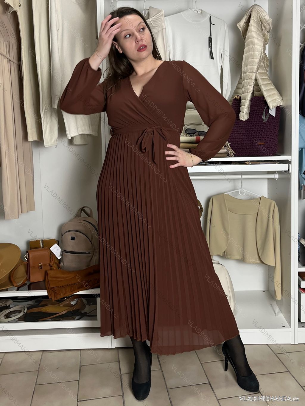Long summer pleated dress with belt, short sleeves, women's (XS/S/M ONE SIZE) ITALIAN FASHION IMWAR252233