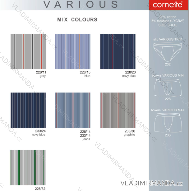Cornette underwear can be ordered at any one by one size. The total order for boxers with a valentine motive, however, must be at least 2000, - CZK.