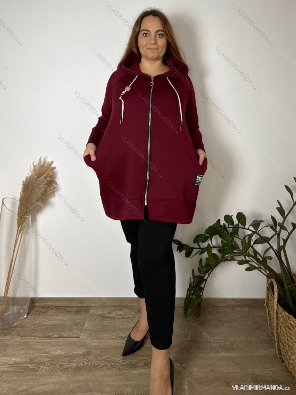 TOVAR (120691) > oblečenie dámske (81782) > Mikiny a cardigany (2446) > Mikiny teplé zimné (921) > Mikina teplá s kapucňou dlhý rukáv dámska nadrozmer RENATA (54/56/58 ONE SIZE) TALIANSKA MÓDA IM425696/DR 54/56/58 vínová