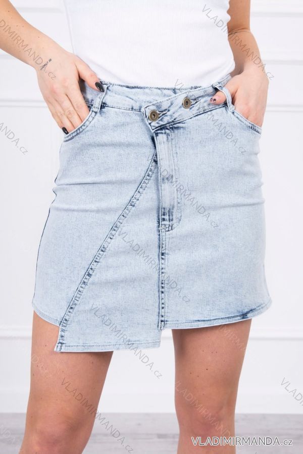 Predstavujeme vám džínsovú sukňu. Sukňa má dlhšiu prednú časť a zapínanie pomocou dvoch gombíkov. Sukňa s vreckami. Zaujímavá ponuka pre všetky dámy. Sukňa je vyrobená z vysoko kvalitného materiálu. Sukne sa predávajú v baleniach po 2 kusoch. Veľkosti v balení S / M a L / XL.