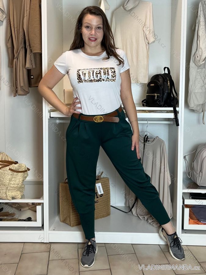 Nohavice s opaskom dámske (S/M/L ONE SIZE) TALIANSKA MÓDA IM425101/DU - béžová - S/M/L