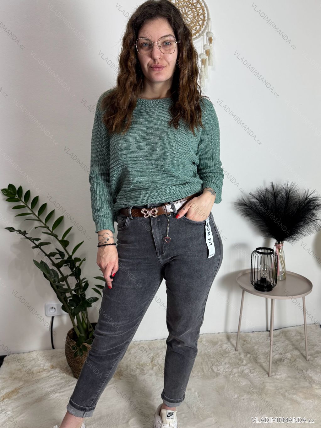 Rifle jeans MOM FIT dámske nadrozměr (M-3XL) MOON GIRL MA525KF520-6/DUR šedá 5XL