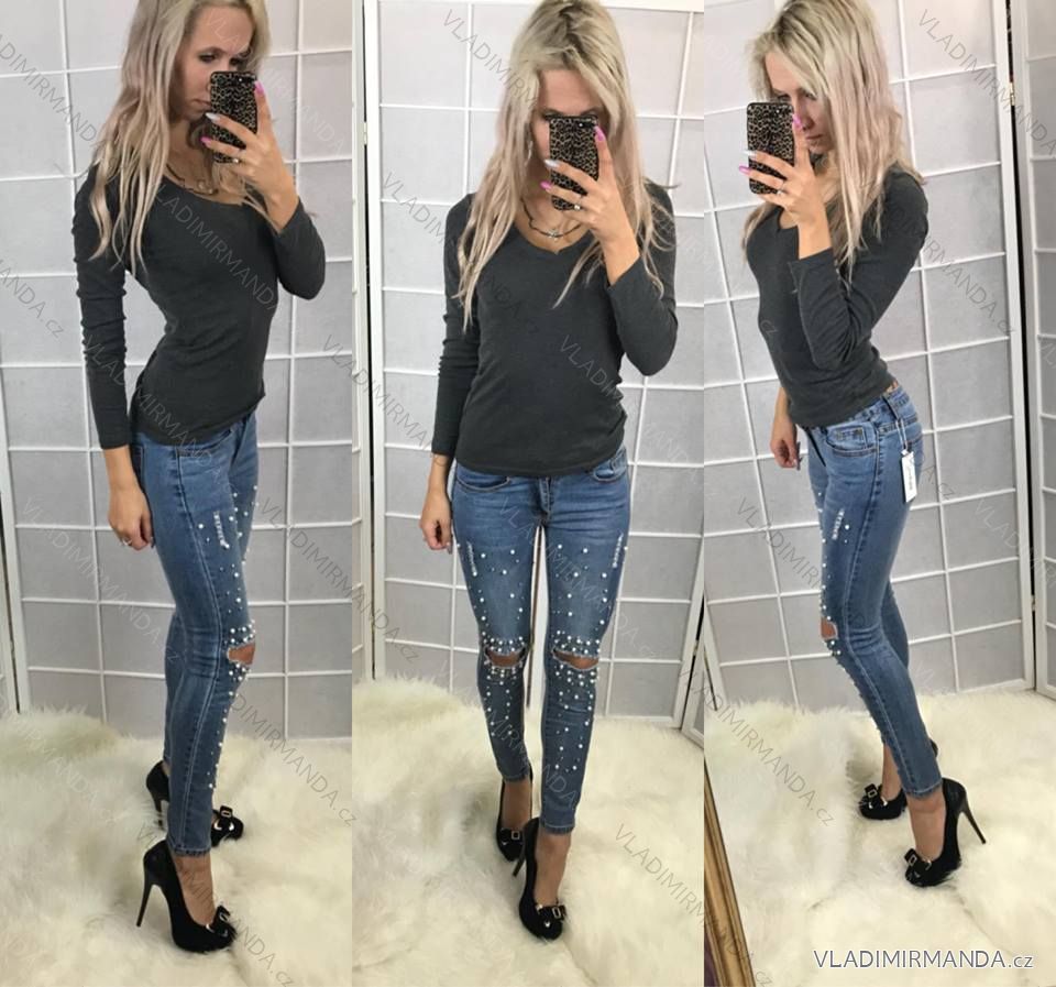 Rifle jeans with women's pearls (26-30 / XS-L) AFASHION AF18057