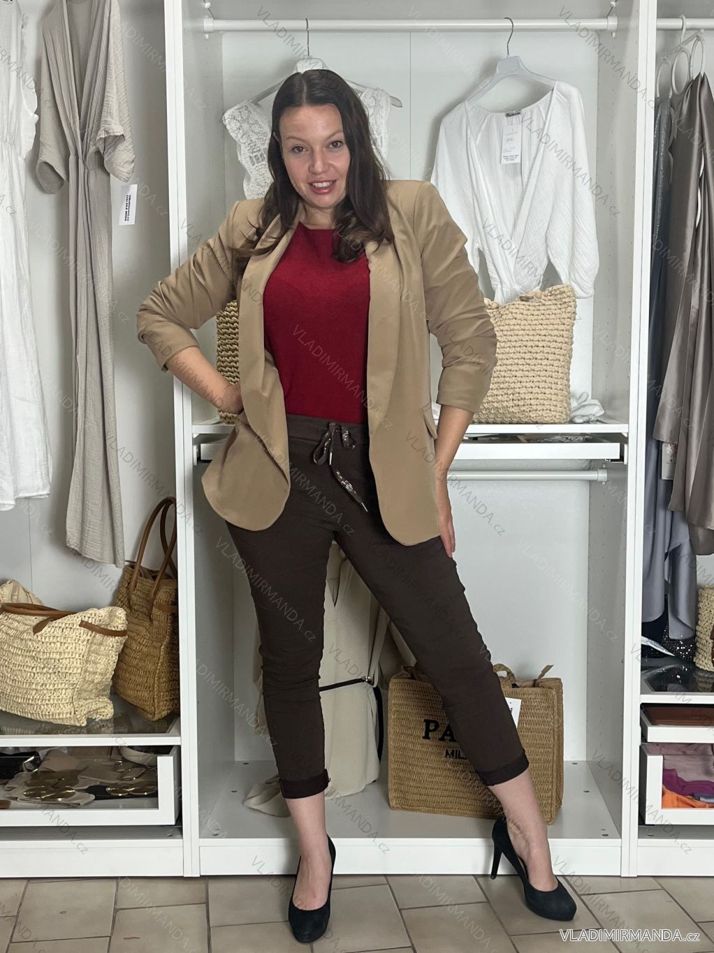 Sako dlhý rukáv dámske (S/M ONE SIZE) TALIANSKA MÓDA IMPVN2522493/DU - hnědá světlá - S / M