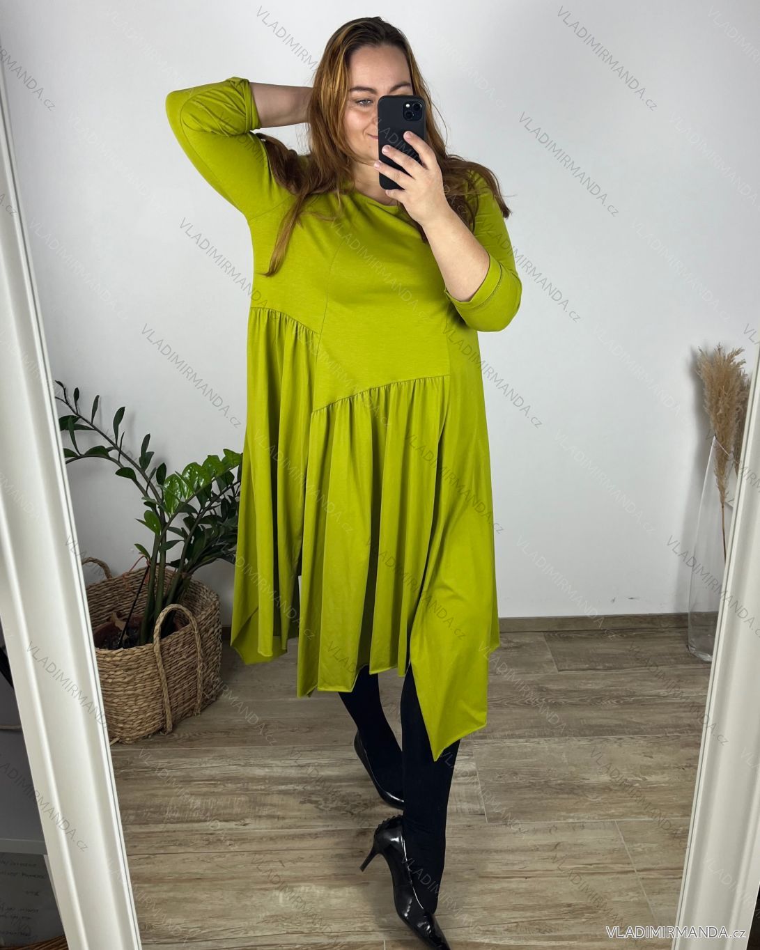 Šaty dlhé 3/4 dlhý rukáv dámske nadrozmer (50/52/54 ONE SIZE) TALIANSKA MÓDA IMC24376/DU 50/52 zelená