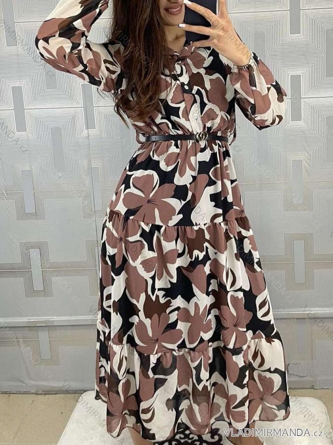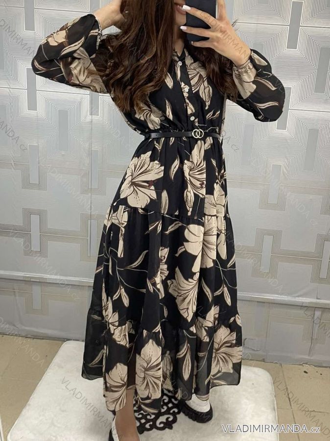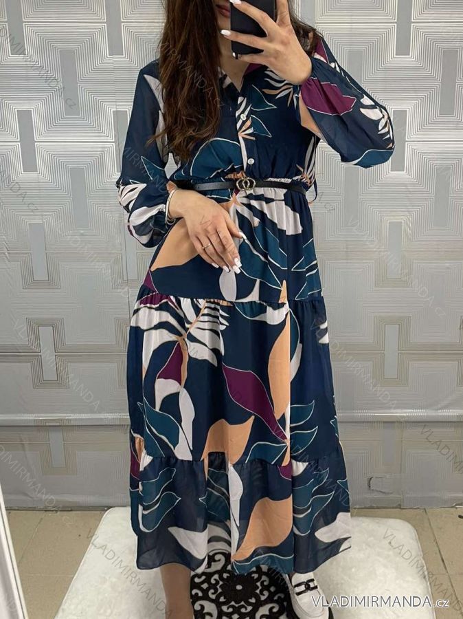 TOVAR (119328) > oblečenie dámske (80685) > šaty (30255) > Šaty dlhé košeľové šifónové s opaskom dlhý rukáv dámske (S/M/L ONE SIZE) TALIANSKA MÓDA IMWAA234116
