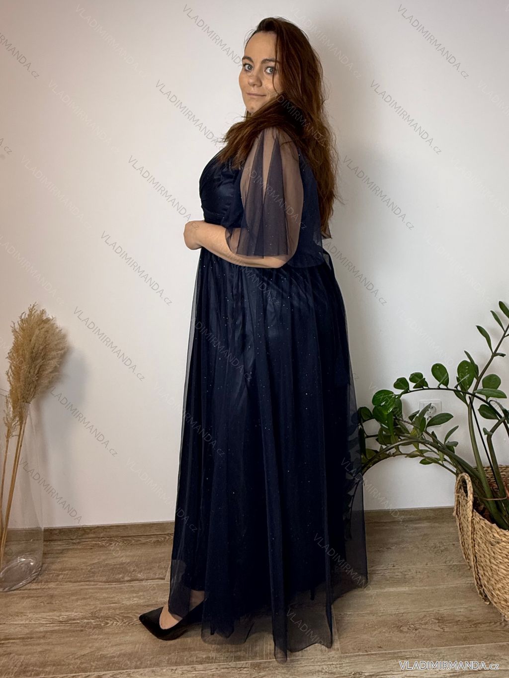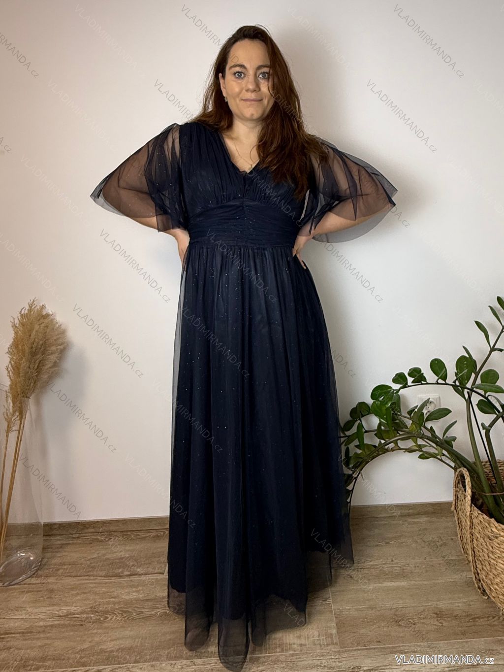 Modelka Veronika na fotografiách má výšku 170 cm a miery 109-115 (prsia-boky)