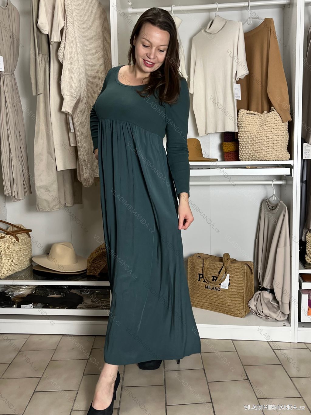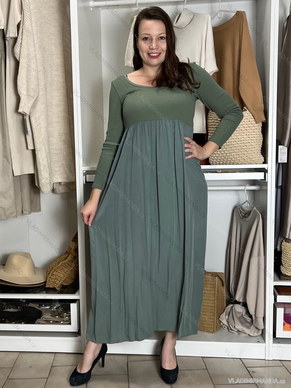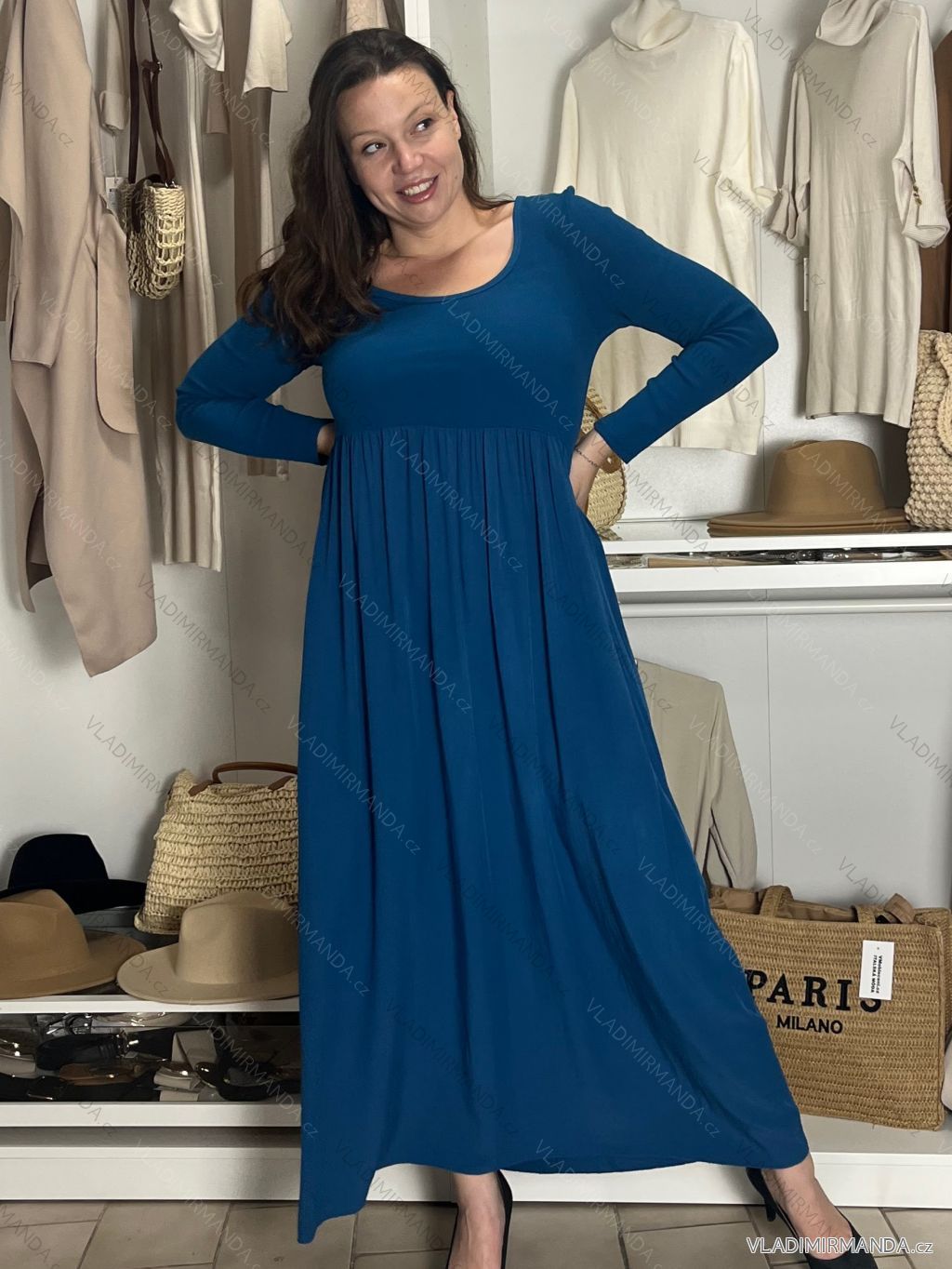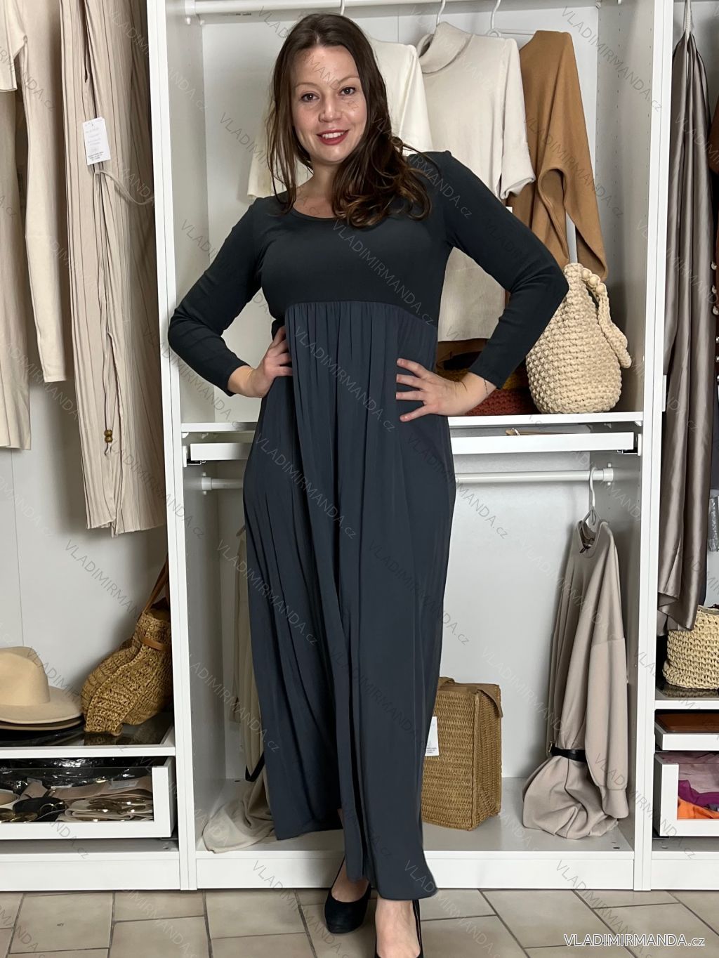 TOVAR (125300) > oblečenie dámske (81928) > šaty (30934) > Šaty dlhé maxi (8193) > Šaty dlhé maxi dlhý rukáv (1020) > Šaty dlhé voľnočasové dlhý rukáv dámske ALEX (S/M/L ONE SIZE) TALIANSKA MÓDA IM425574/DUR tm. šedá S/M/L
