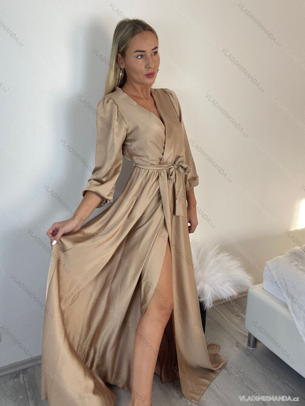 ZBOŽÍ (120494) > Oblečení dámské (81606) > Šaty (30658) > Šaty dlouhé elegantní saténové dlouhý rukáv dámské (S/M ONE SIZE) ITALSKÁ MÓDA IMPBB24O782/DUR S/M zlatá