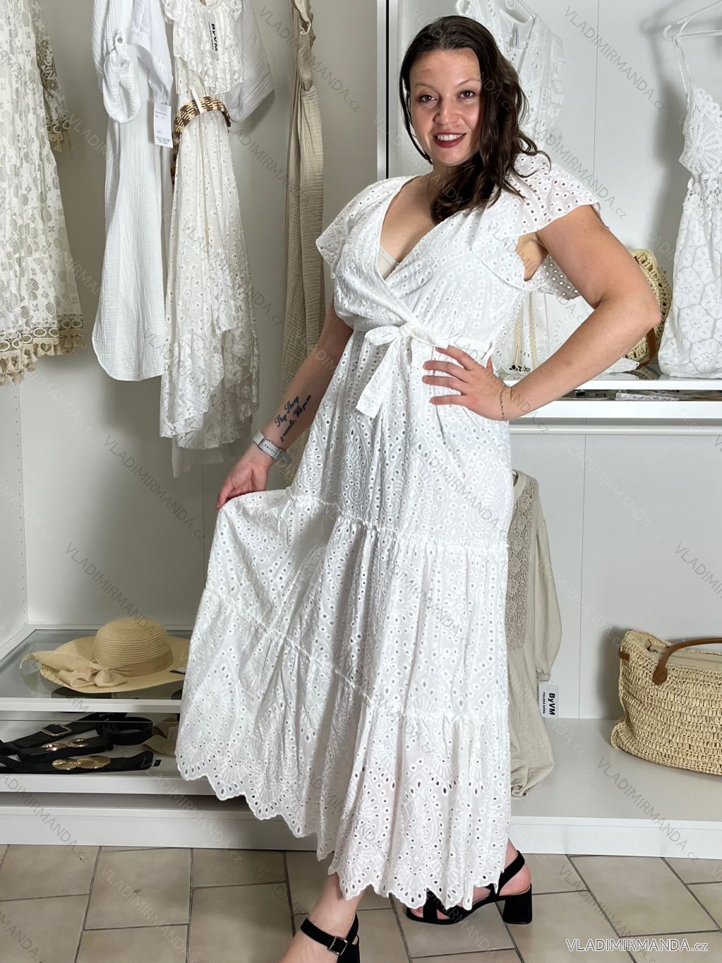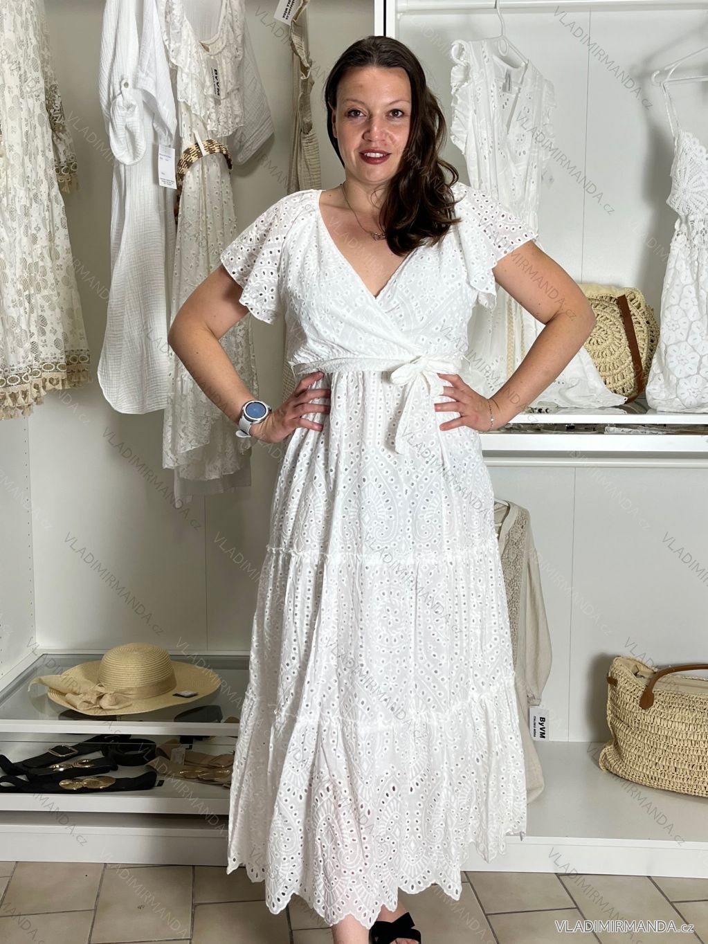 Šaty dlouhé letní krajkové krátký rukáv dámské (S/M - L/XL) ITALSKÁ MÓDA IMPEM2553062-5