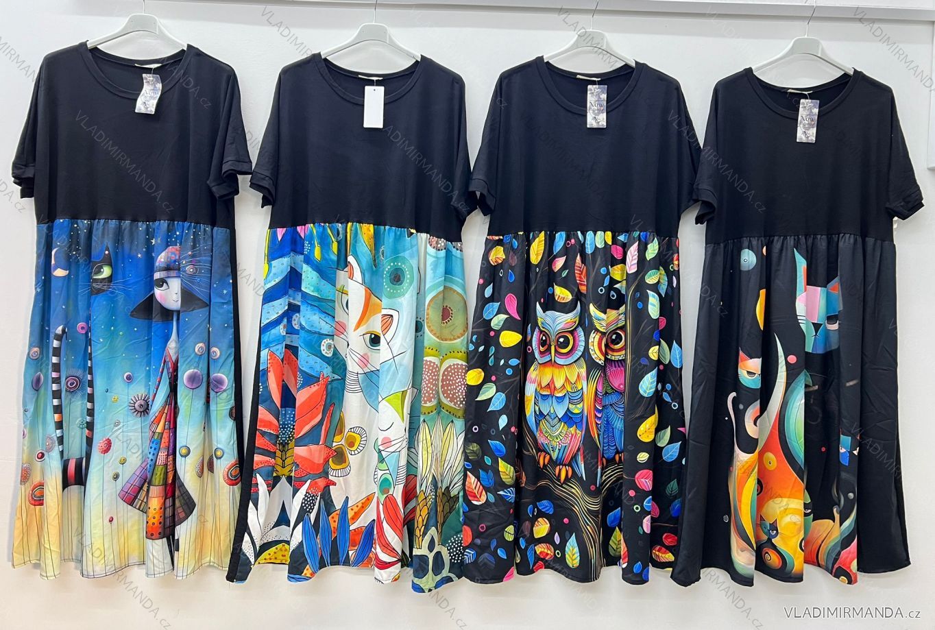 Šaty dlouhé letní krátký rukáv dámské nadrozměr (52/54/56 ONE SIZE) ITALSKÁ MÓDA IM425068