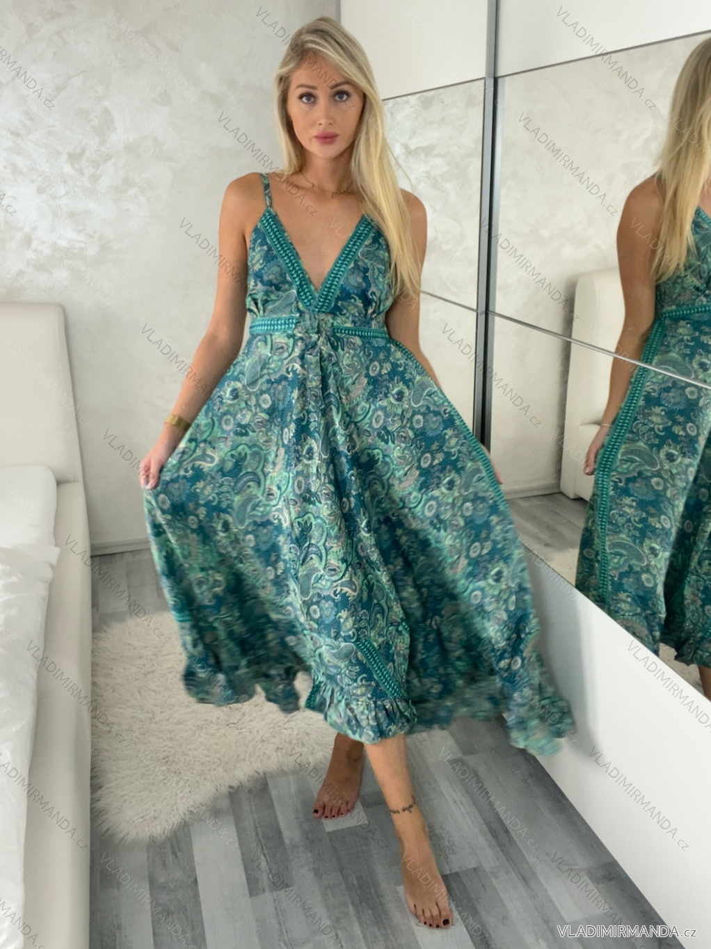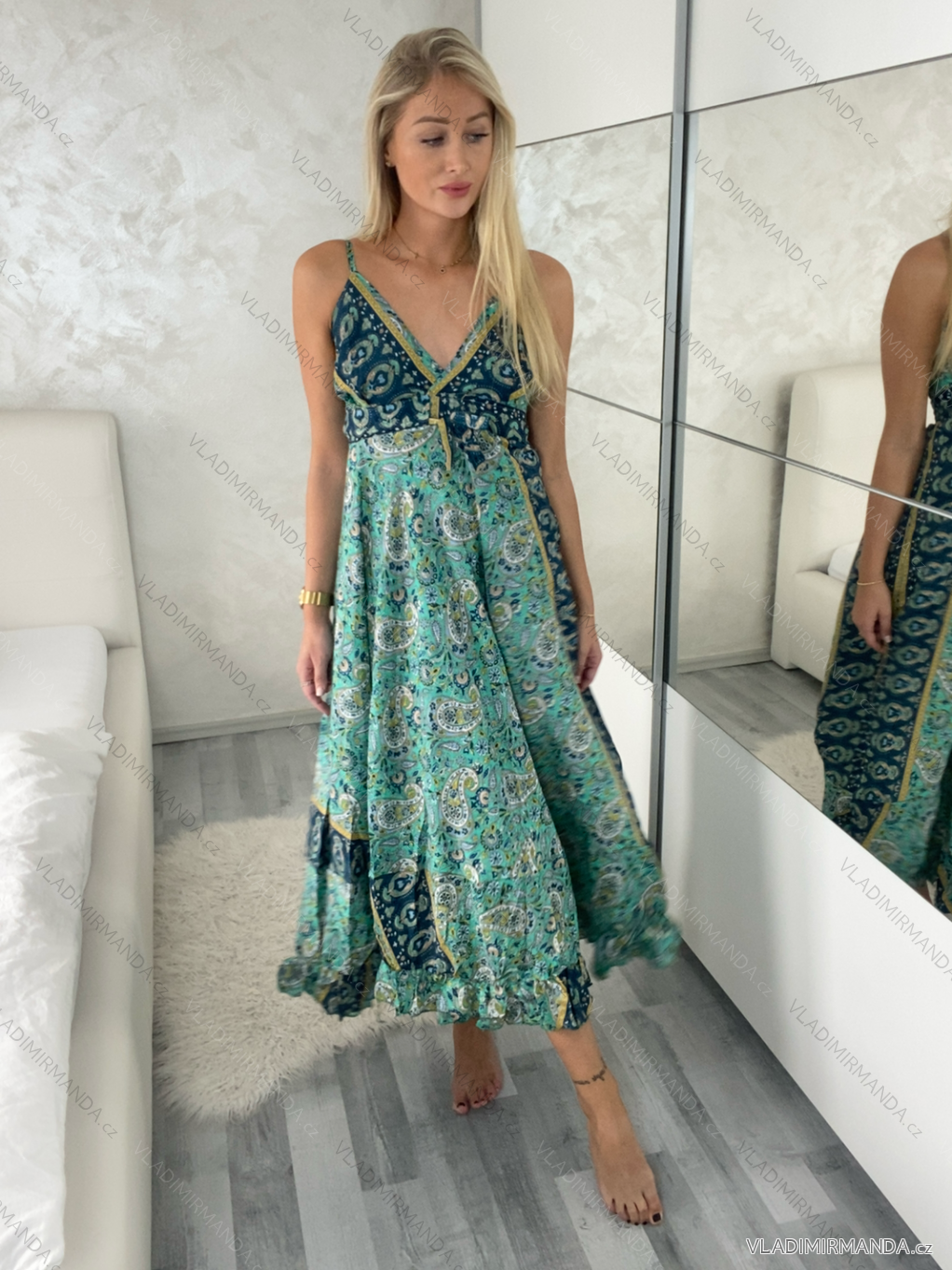 Šaty dlouhé letní na ramínka dámské RAMONA (S/M/L ONE SIZE) INDICKÁ MÓDA IMWKA251062