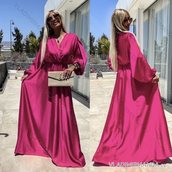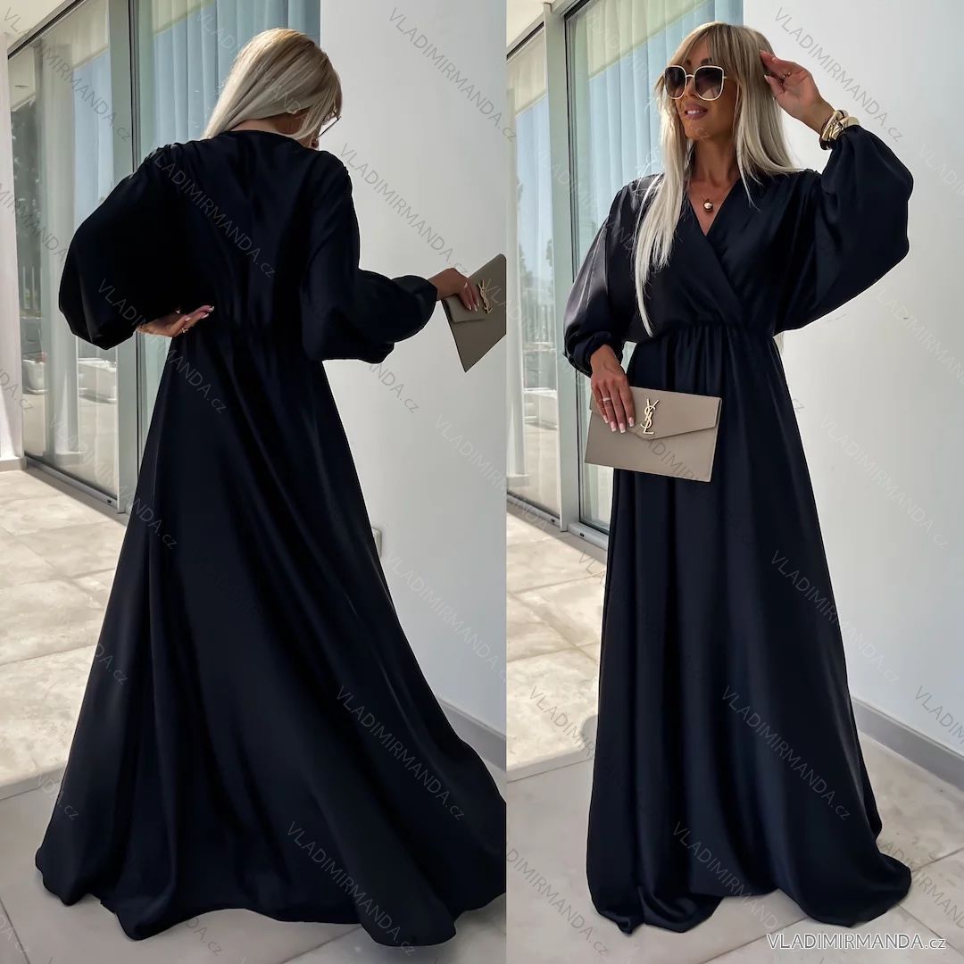 Šaty dlouhé saténové dlouhý rukáv dámské (S/M ONE SIZE) ITALSKÁ MÓDA IMPBB24O5779