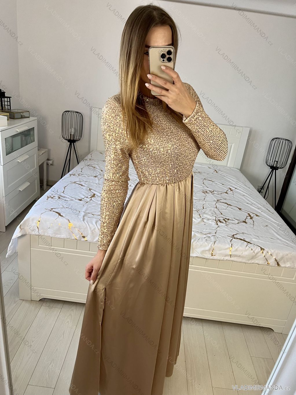 ZBOŽÍ (119492) > Oblečení dámské (80913) > Šaty (30346) > Šaty dlouhé společenské flitrové dlouhý rukáv dámské (S/M ONE SIZE) ITALSKÁ MÓDA IMPGM2324526/DUR - stříbrná - S/M