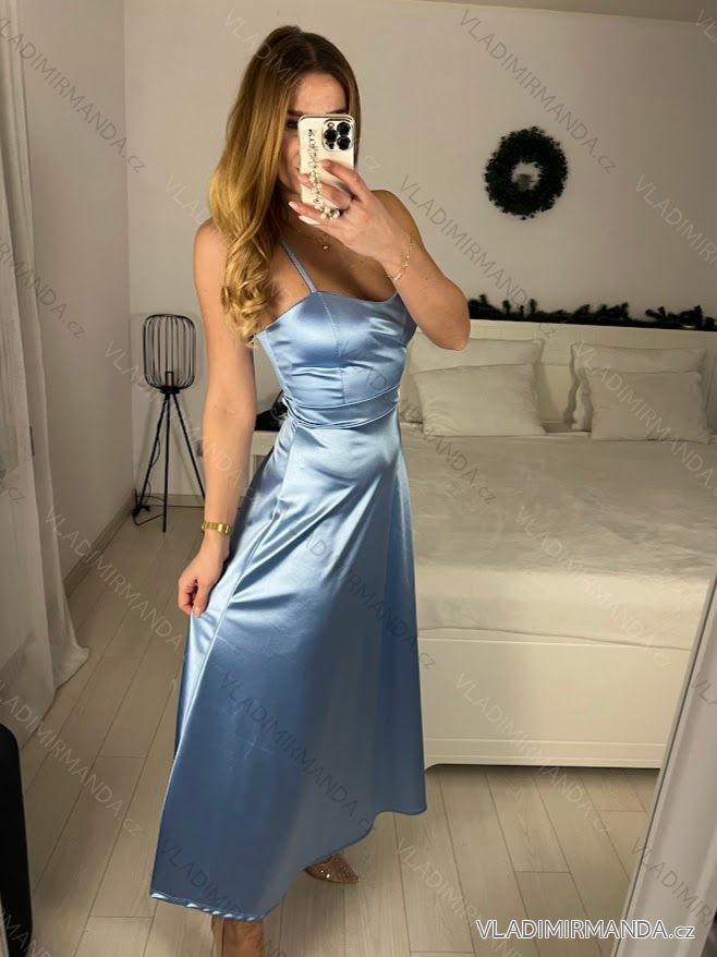 Šaty dlouhé společenské na ramínka dámské (S/M ONE SIZE) ITALSKÁ MÓDA IMPSH246456 bílá S/M