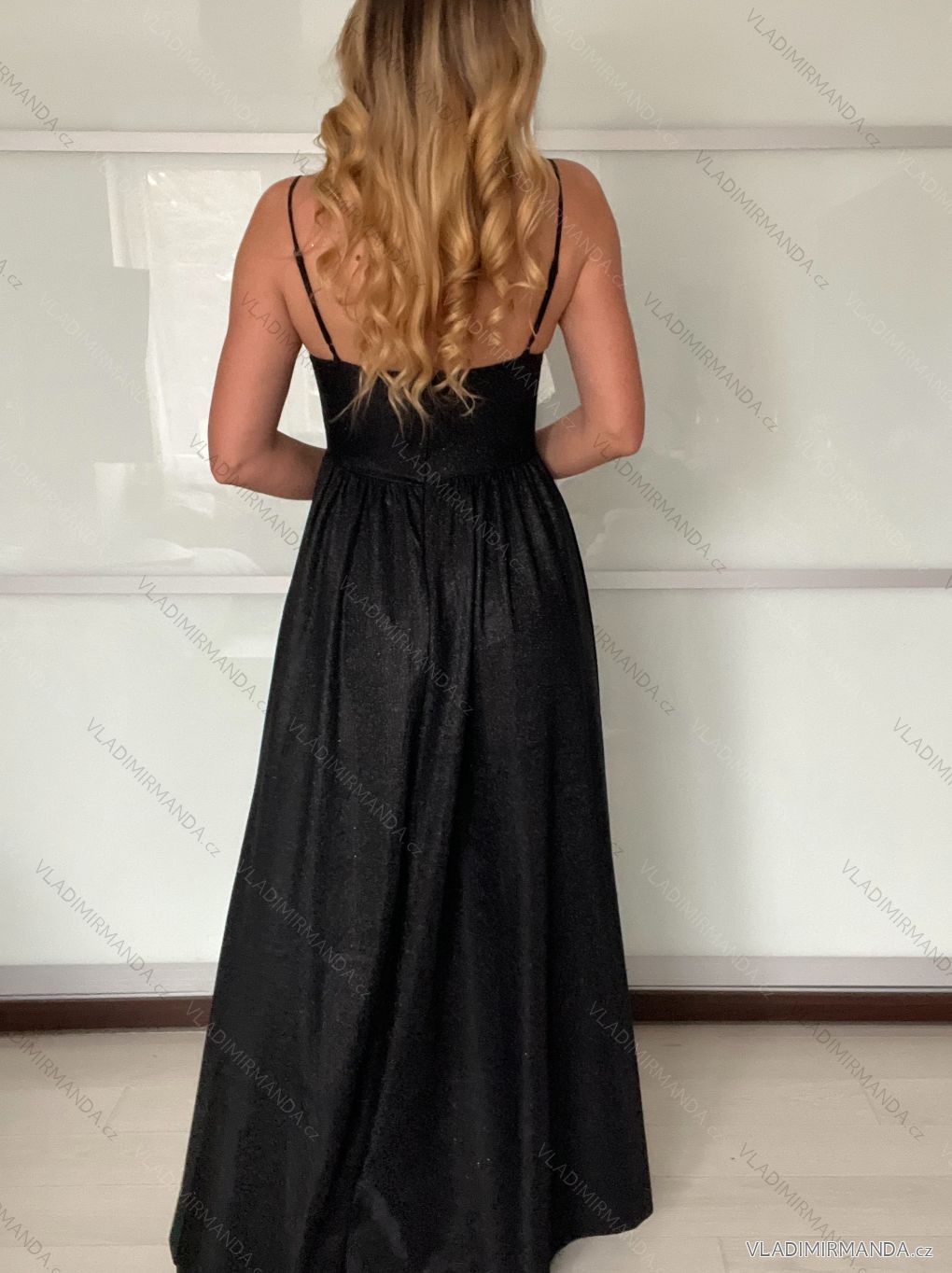 Šaty dlouhé společenské na ramínka dámské LEONA (S/M ONE SIZE) ITALSKÁ MÓDA IMPMD2643458/DU S/M Černá