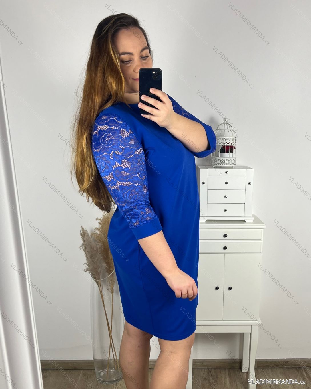 Šaty elegantné spoločenské 3/4 rukáv dámske nadrozmer (44-56) POLSKÁ MÓDA PMFF24DITA3/DUR - kráľovská modrá - 46