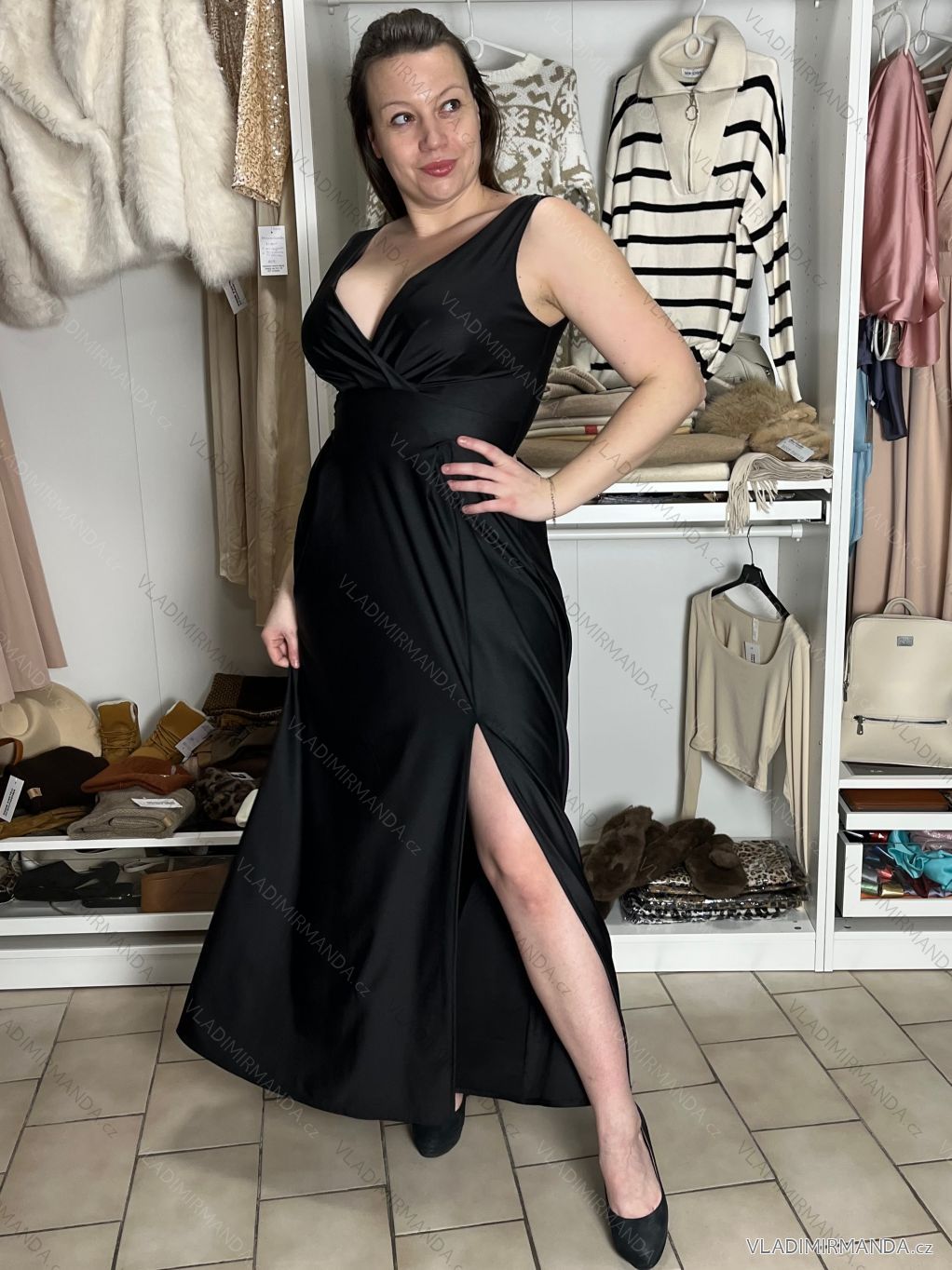 Šaty elegantné spoločenské dlhé na ramienka dámske (L/XL ONE SIZE) TALIANSKA MÓDA IM325100/DUR L / XL hnedá